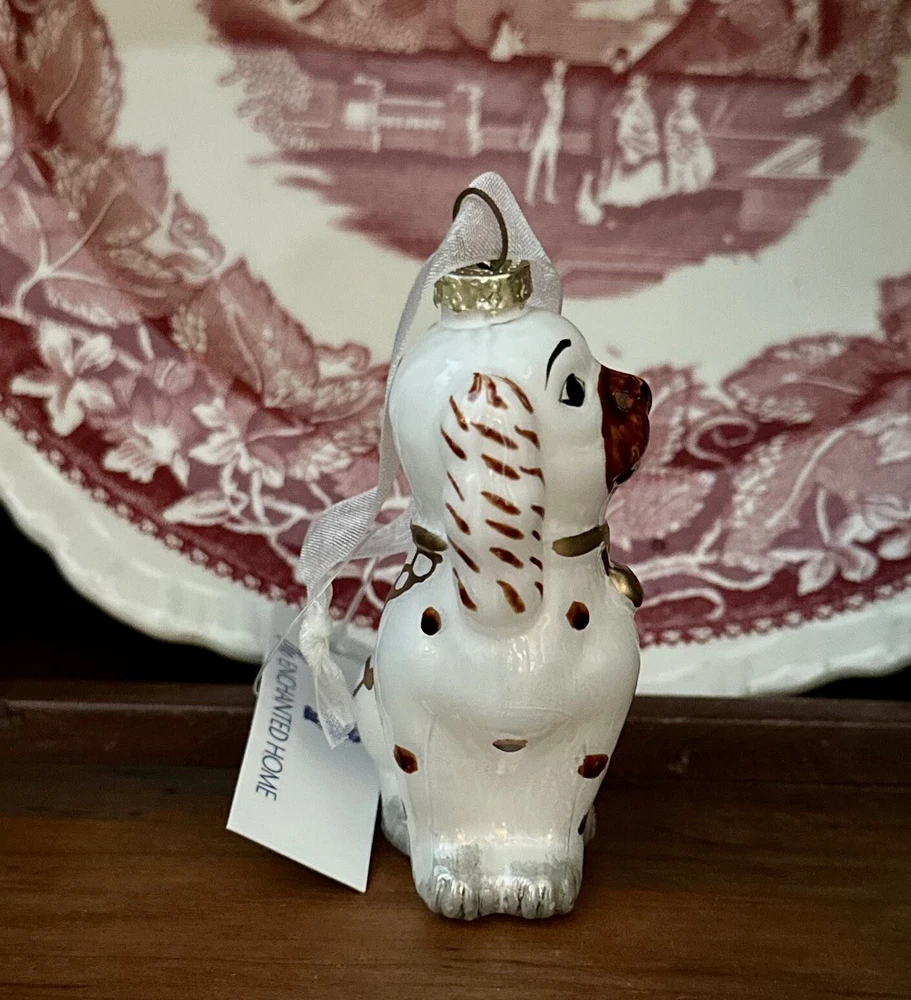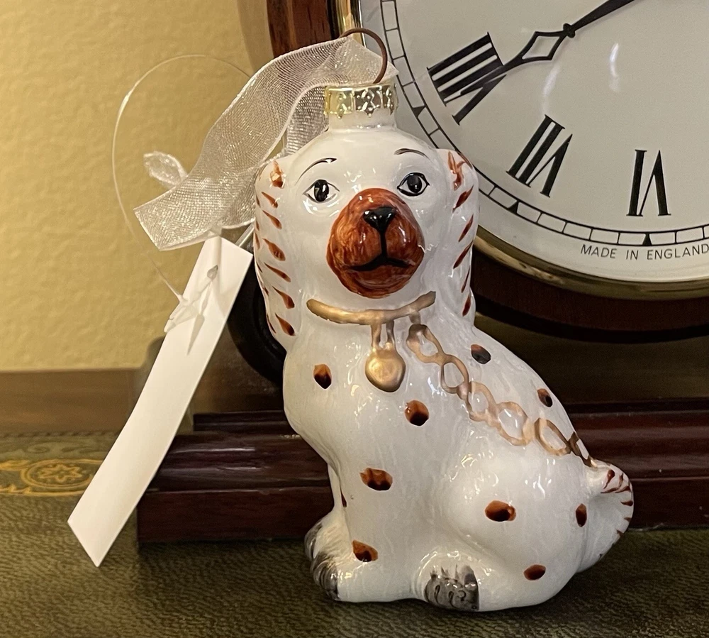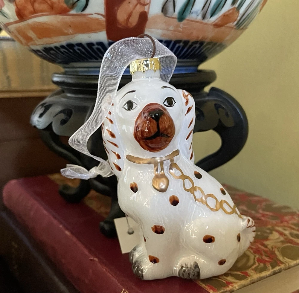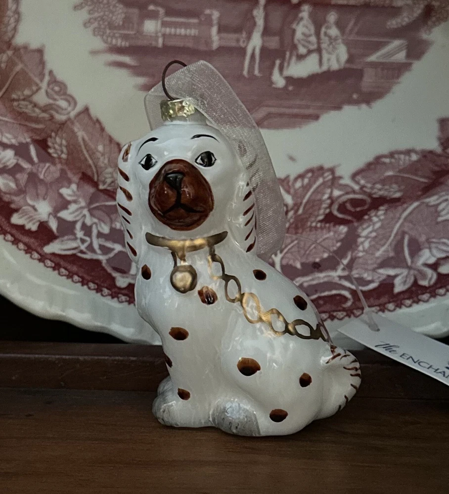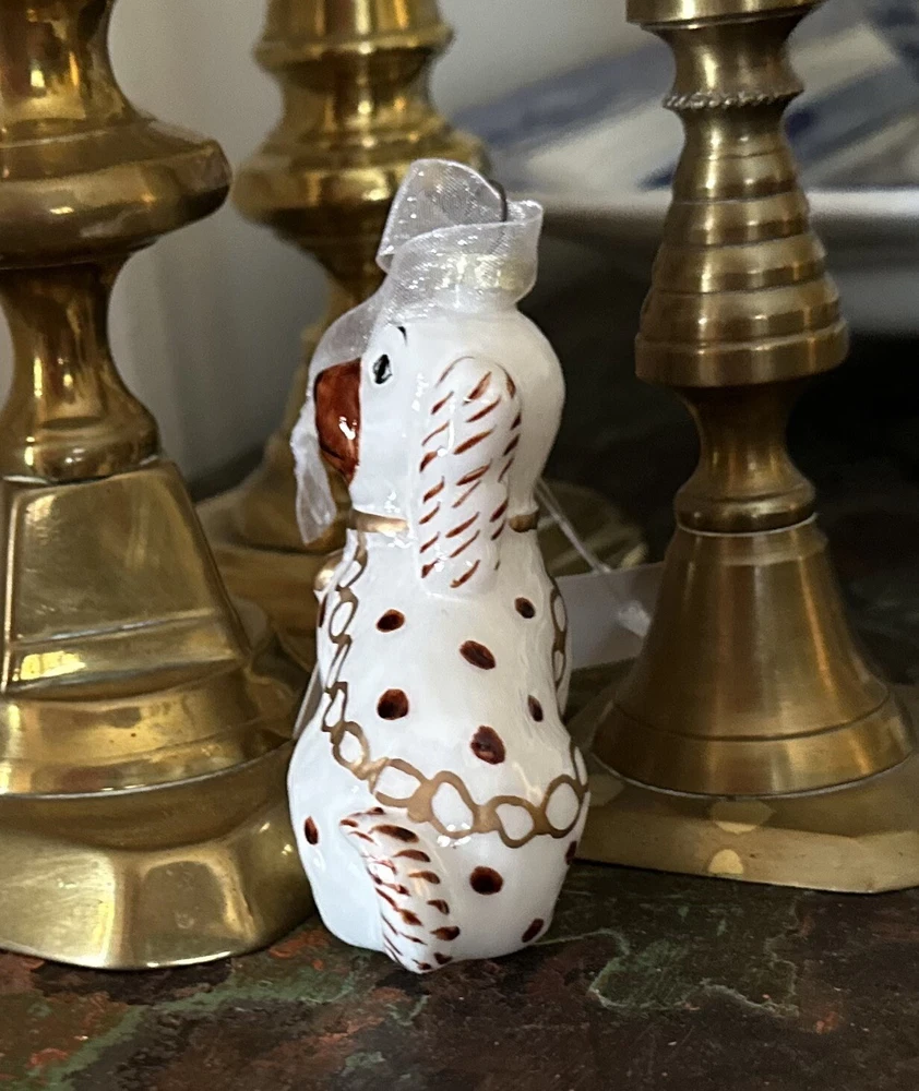 Antique Staffordshire Dog Ornament brand new height 3” plus hanger ring handpainted glass a similar ornament is listed separately (see last pics) smoke-free & pet-free home I'm cleaning out my closets of gifts never given, items never used, clothes never worn, projects never done, etc. If interested, check out my other items. I definitely combine shipping!