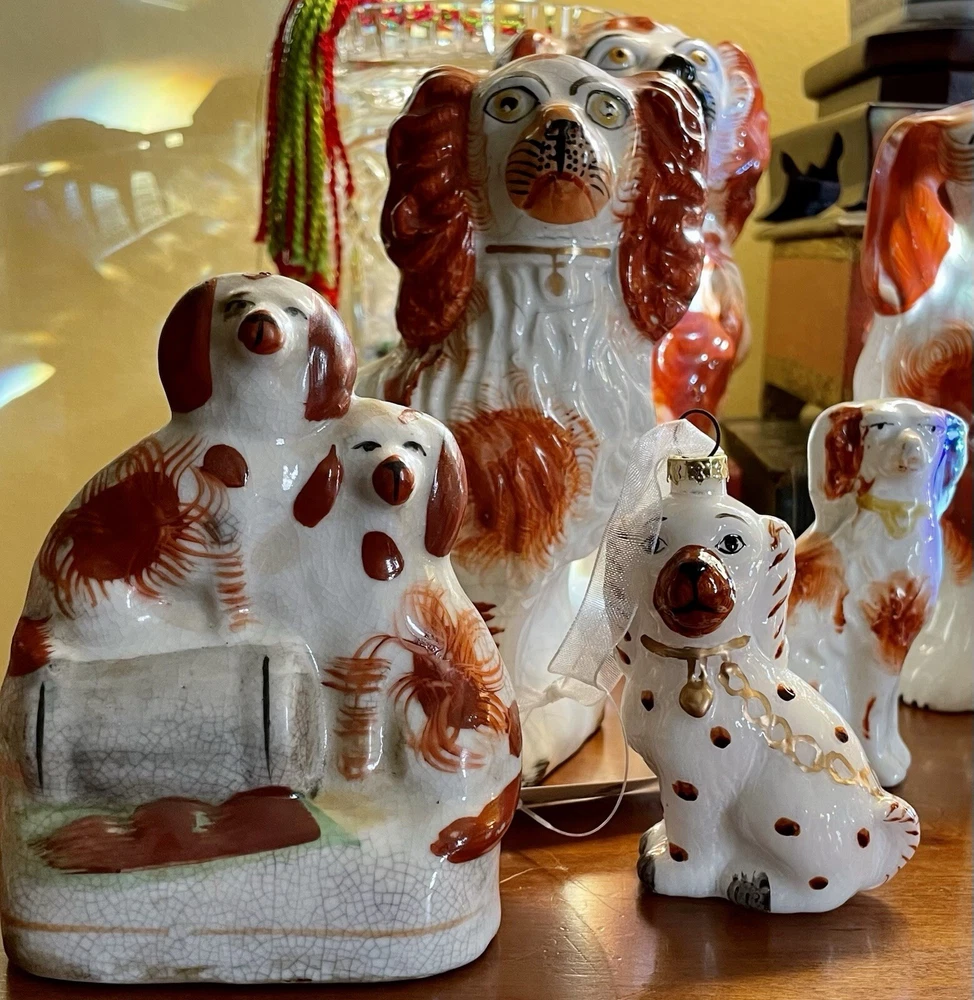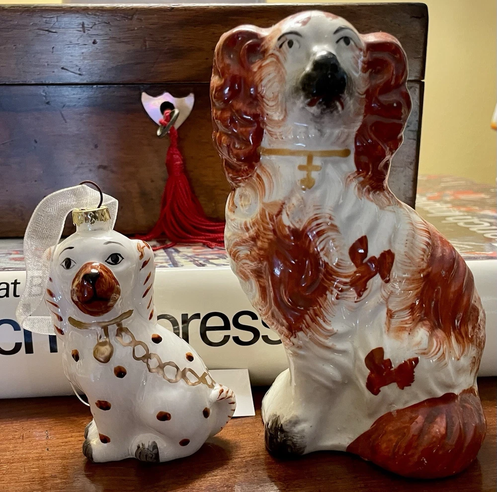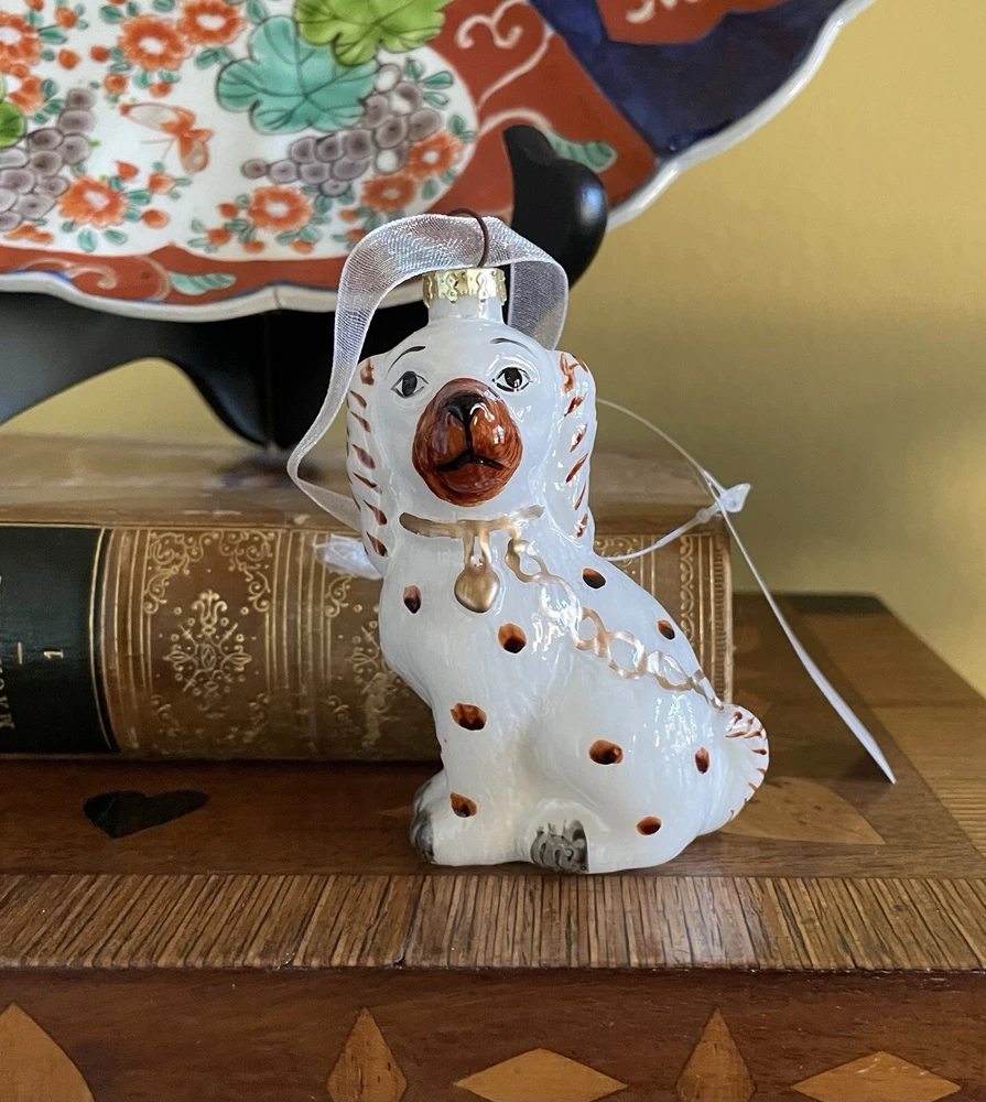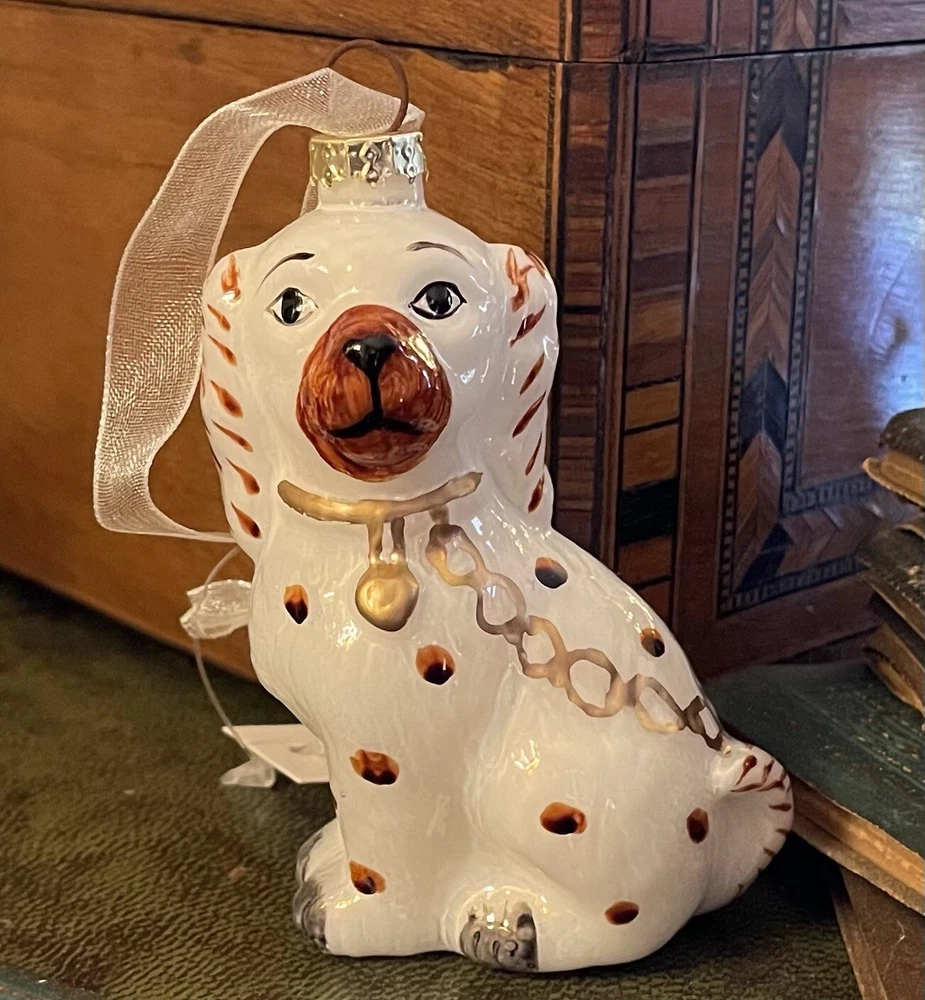Antique Staffordshire Dog Ornament brand new height 3” plus hanger ring handpainted glass a similar ornament is listed separately (see last pics) smoke-free & pet-free home I'm cleaning out my closets of gifts never given, items never used, clothes never worn, projects never done, etc. If interested, check out my other items. I definitely combine shipping!