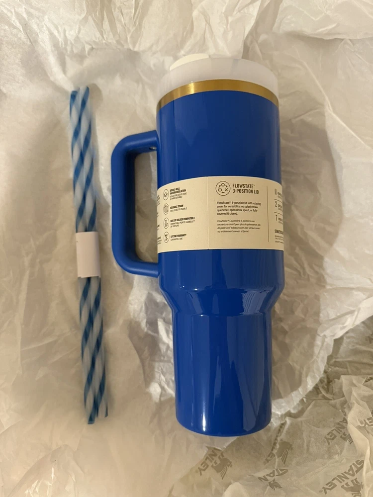 Lid Type:TwistBeverage Type:Hot or ColdKeeps Cold For:12 hrsModel:flowstate arctic twistCare Instructions:Machine WashableBrand:StanleyCountry/Region of Manufacture:ChinaTheme:Christmas, SnowKeeps Hot For:8 hrsType:TumblerFeatures:Handle, Insulated, With StrawMaterial:Stainless SteelCapacity:40ozCharacter Family:ArcticPattern:StripedManufacturer Warranty:LifetimePersonalize:NoColor:Blue