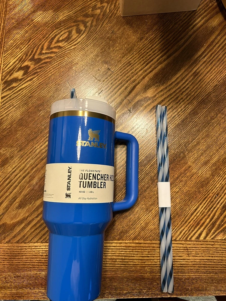 Stay hydrated and stylish this holiday season with the NEW Stanley Arctic Twist Quencher H2.0 Flowstate Tumbler 40 OZ. This tumbler is perfect for both hot and cold beverages, and can keep your drink at the desired temperature for up to 12 hours. Featuring a striped blue design and snow-themed decals, this tumbler is a great addition to your Christmas morning gift list. Crafted from high-quality stainless steel, this tumbler is durable and easy to clean with machine washable care. The twist lid type and 40oz capacity make it easy to drink on the go, while the Flowstate technology ensures a smooth and refreshing experience. With a lifetime manufacturer warranty, this tumbler is a great investment for yourself or a loved one.