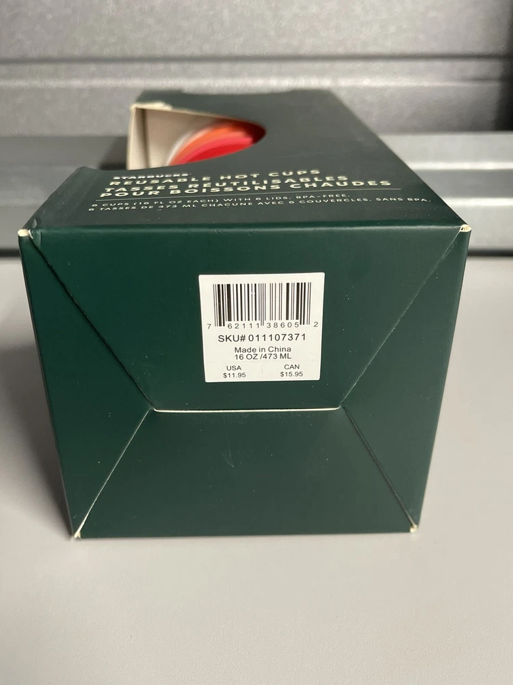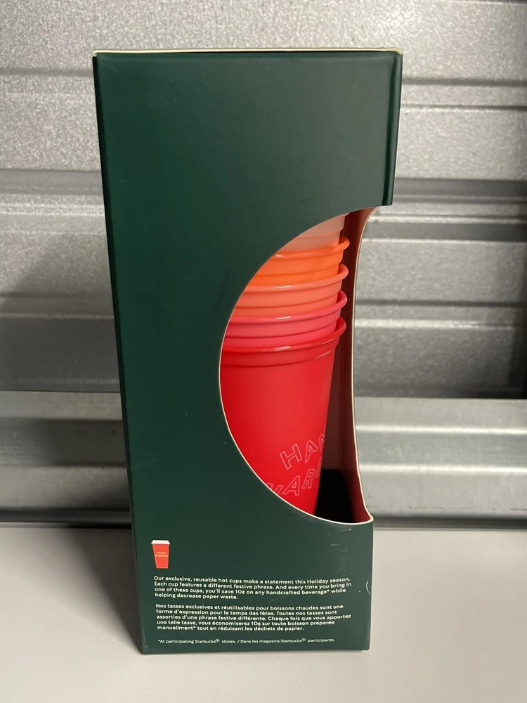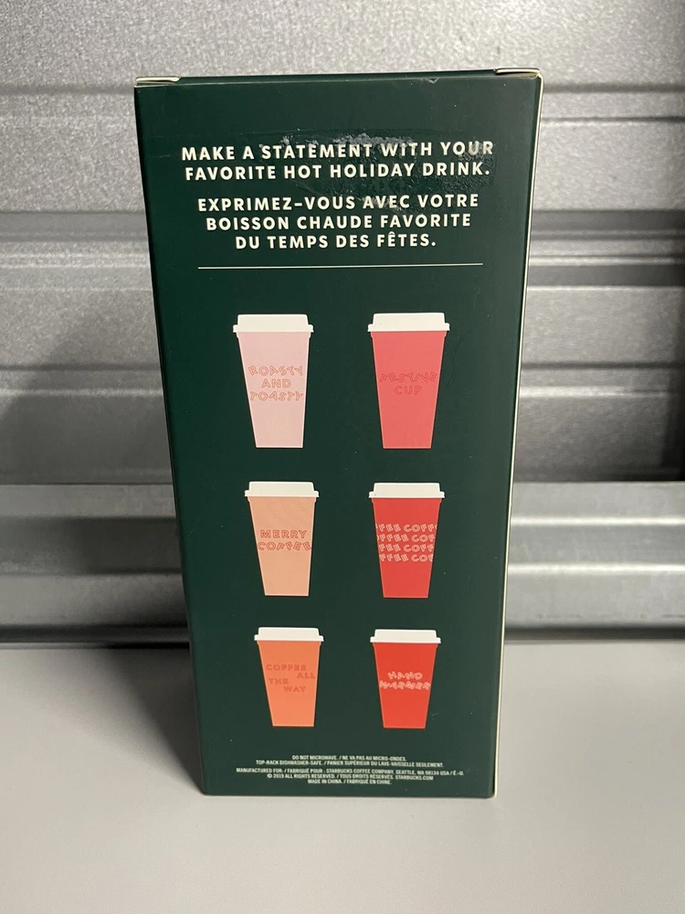 Enjoy your coffee in style with this set of 6 Starbucks® Reusable HOT Holiday Cups. Each cup is perfect for your daily dose of caffeine and features a colorful design that will make your morning routine more enjoyable. The cups come with lids to prevent spills and are great for use at home or in the office. Made in China and created in 2019, these original Starbucks® cups are a must-have for any coffee and tea lover. They are collectible and feature the Starbucks® brand, making them a great addition to your collection. Get your hands on these festive cups and enjoy your coffee in style all year long.