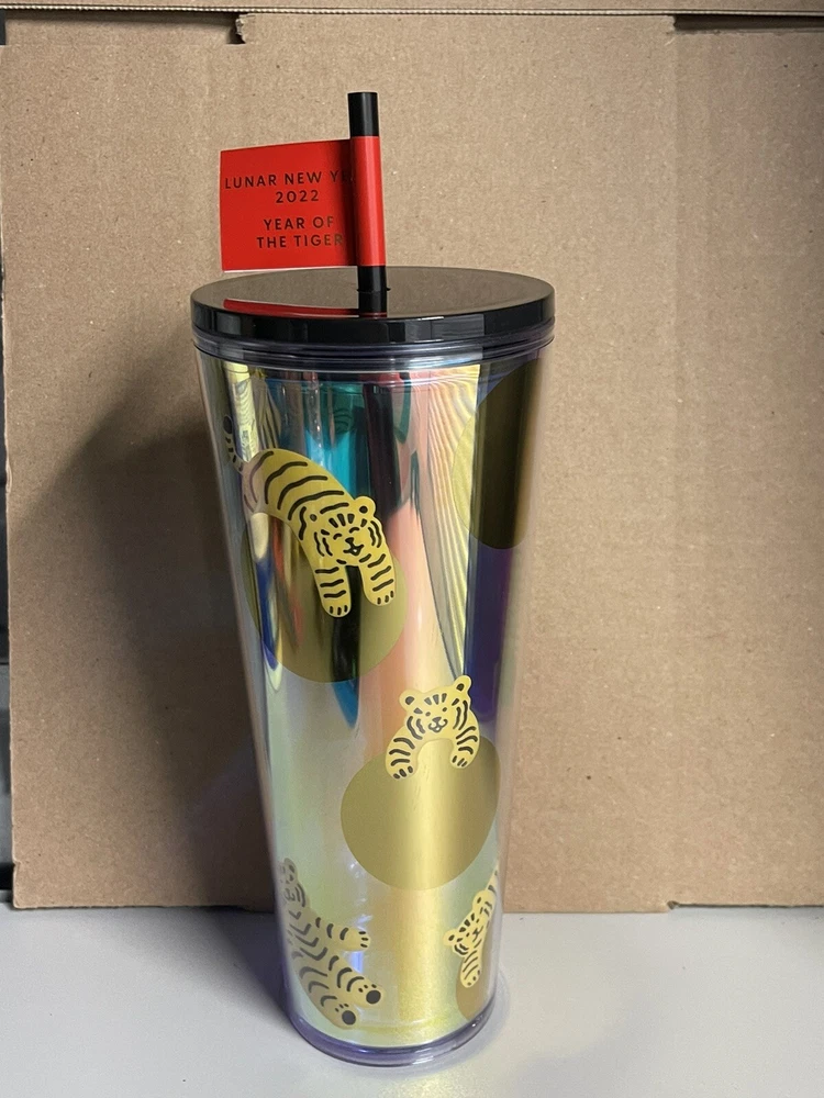Celebrate the Lunar New Year of the Tiger with this stunning Starbucks Venti 24oz Tumbler. Featuring a beautiful multi-color design, this original piece is perfect for coffee and tea lovers alike. Made by the renowned Starbucks brand, this tumbler is a must-have for collectors and fans of the franchise. Whether you're looking to add to your Starbucks collection or simply want a stylish and functional tumbler, this Lunar New Year edition is the perfect choice. With its spacious 24oz capacity, it's ideal for your daily coffee or tea fix. So don't miss out on this opportunity to own a unique and beautiful Starbucks tumbler.