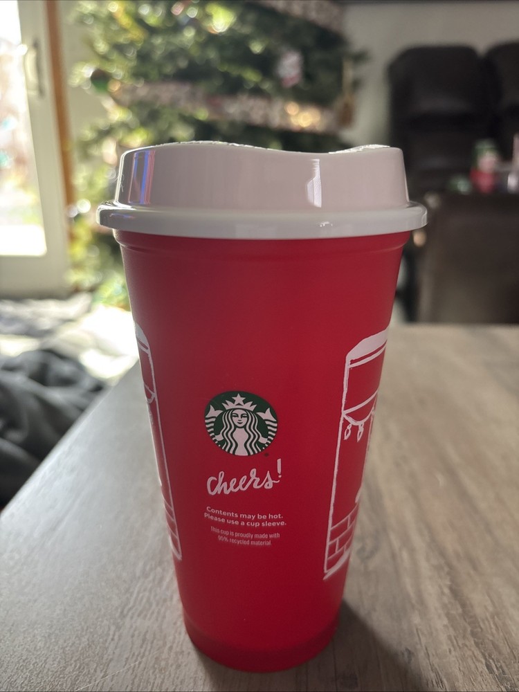 The product is a limited edition 16oz reusable coffee cup featuring Starbucks' iconic red cup design for the Christmas 2025 holiday season. This collectible item serves as a sign of the brand's advertising campaign and is themed around coffee and tea. It is an original piece that is sure to be a popular item among Starbucks fans and collectors alike.