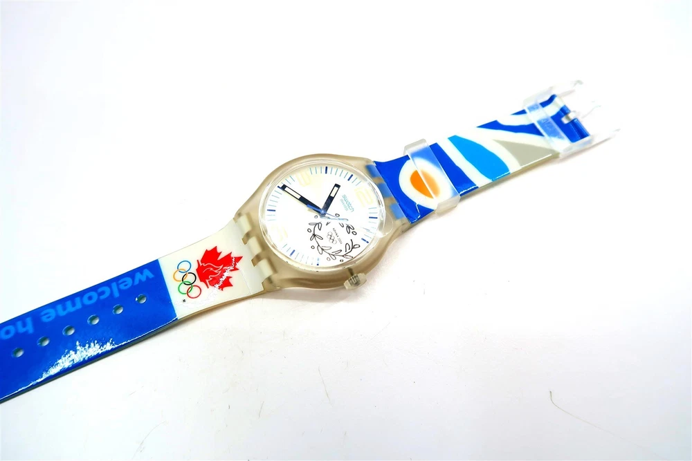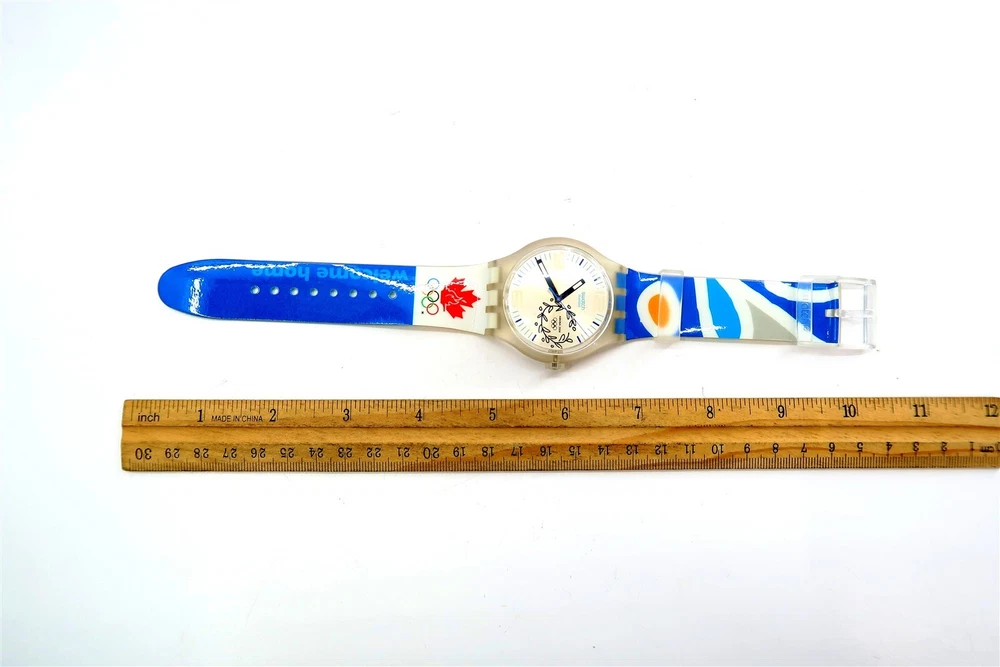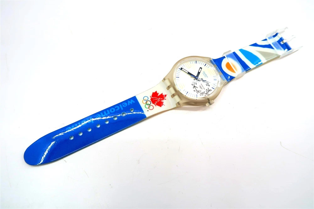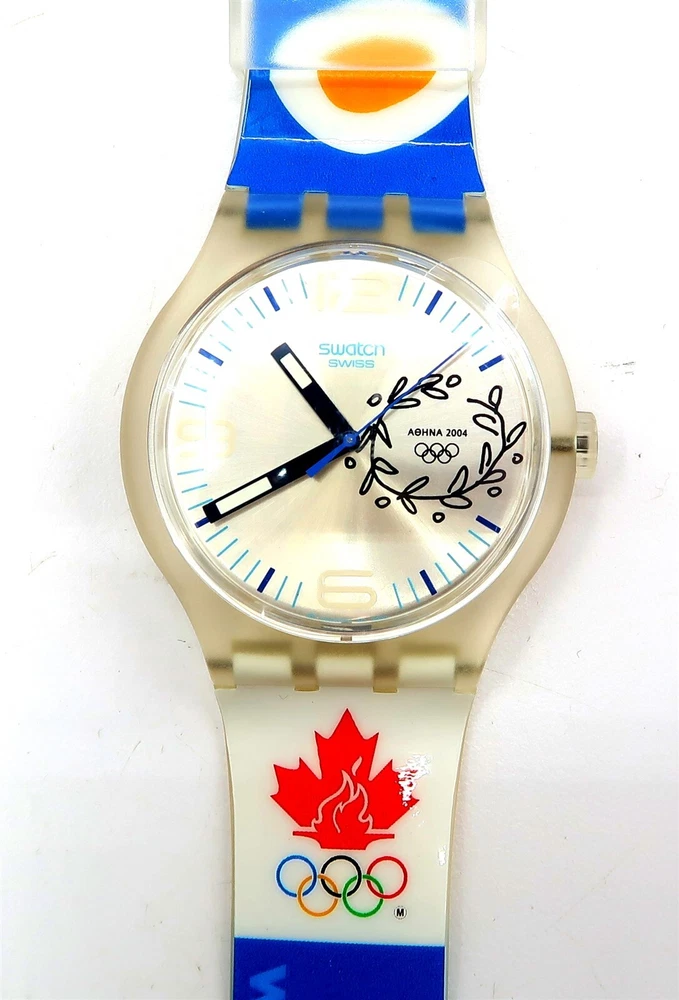 NEW Swatch Watch NOC CANADA SUDK106F 2004 Athens Olympic Games X-Large Gents This eBay listing is for a New Old Stock classic SWATCH WATCH that comes as you see pictured in the listing and noted above. This watch is brand new and never used before and comes with the original case and paperwork. If you collect classic Swatch Watches, then please check out my other listings in my ebay store for many more great Swatches!! I just picked up close to 800 NOS Swatches from a local auction where I'm told the consignor had one of the largest Swatch watch collection in the United States. This was their 3rd and final auction of Swatches. In total, I purchased close to 1500+ Swatches!! Many of the watches are Special Editions, Limited Editions, Boxed Sets, Scarce and rare models plus other vintage Swatches as well. I will remove all of the old Swatch batteries and will replaced them with brand new batteries to verify that they are all are all in good working condition unless noted below. Please note that vintage and retro Swatches are on the smaller size compared to modern style watches. Most standard Gents (mens) watches have a 33mm-34mm case. I will try to include a picture with each new listing showing the watch next to a standard ruler so that you can see the true size of this collectible Swatch watch. Swatch name : NOC CANADA Model : SUDK106F New Battery : Yes (due to age, the original battery was removed with a new battery installed) Features/Notes : Works Great! Circa 2004. Seller Location Reference - Box 94A BID IN CONFIDENCE – CHECK MY FEEDBACK! My goal is your satisfaction. I leave positive feedback right after the payment is received for all orders!! If you plan to leave anything less than positive feedback and 5 stars - please let me know so that I can work out any problems that you may have. I aim to please!! SHIPPING & HANDLING FOR US BIDDERS We ship ASAP upon payment as noted above within 1 business day 99% of the time!! We normally pack up your new treasures 2 - 3 times a day and ship using USPS and Fedex Ground so that you get your items in a timely fashion. As always - there is no charge for local pickup on any of my items!! SHIPPING AND HANDLING FOR INTERNATIONAL BIDDERS Import duties, taxes and charges are not included in the item price or shipping charges. These charges are the buyer’s responsibility. Please check with your country’s customs office to determine what these additional costs will be prior to bidding/buying.” THANK YOU AND HAVE A WONDERFUL DAY!! Powered by SixBit's eCommerce Solution