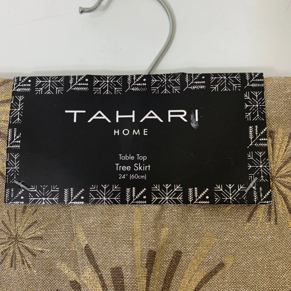 NEW Tahari Home Table Top Tree Skirt in Beige and Gold 24” New with tags! Beige with snowflake pattern Gold trim 1P40 7-5854