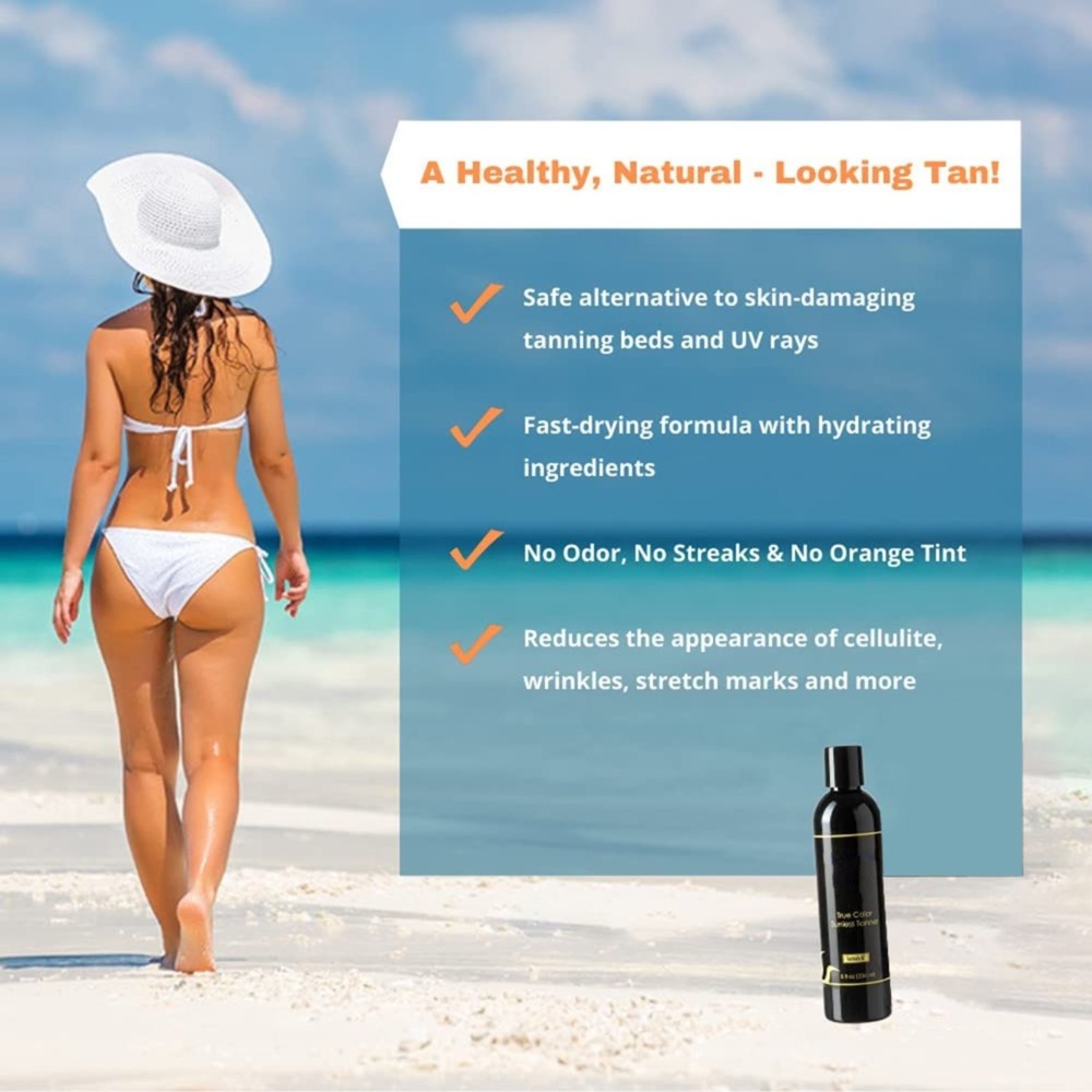 Tanning Lotion Water Proof Tanning Summer Beach Bath Bronze Long Lasting Self Tanning Wheat Color 236ml/8oz Features: Perfectly formulated to give you a rich, natural-looking tan that will even your expectations. Not does it give your skin a gorgeous bronze , it's also formulated with exclusive moisturizers to moisturize, replenish, and your skin. It's a tanning and product in one bottle that will you time, , and hassle. Whether you're a pro or a beginner, our tanning lotion will give you a natural-looking complexion you have to see to . How to Use: Step 1: For the best, most even results, you need to keep your skin as clean, smooth, and exfoliated as possible. We recommend that you avoid using nylon or loofah sponges. They are too harsh for your skin and will not exfoliate evenly, resulting in a poor tan. Gently exfoliate using circular motions, paying special attention to your knees, elbows, heels, backs of your hands and feet, and any areas where your skin is dry. Be sure to thoroughly rinse off all shampoo, conditioner, soap, gel, etc. Product Description: Tanning lotion tanning summer beach bath bronze long-lasting self-tanning wheat color 236ml/8oz Material: Plastic Color: as the picture shows, (Due to the difference between different monitors, the picture may have slight color difference. please make sure you do not mind before ordering, Thank you!)