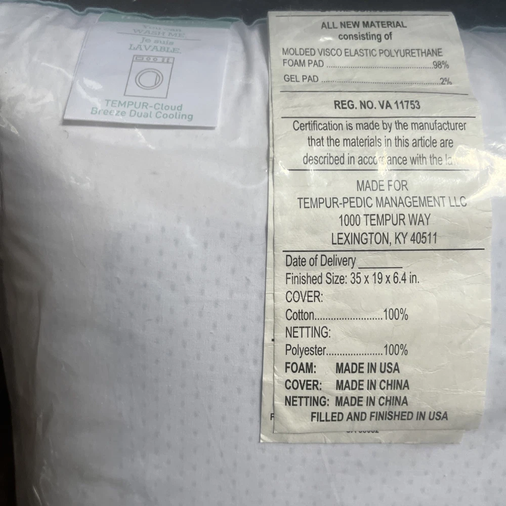 Fill Material:Memory FoamType:Bed PillowRoom:BedroomBrand:Tempur-PedicShape:RectangularProduct Line:Breeze Dual CoolingUPC:Does not applygtin13:Does not applySize:35” X 19”MPN:15440325PColor:WhiteFeatures:Cooling