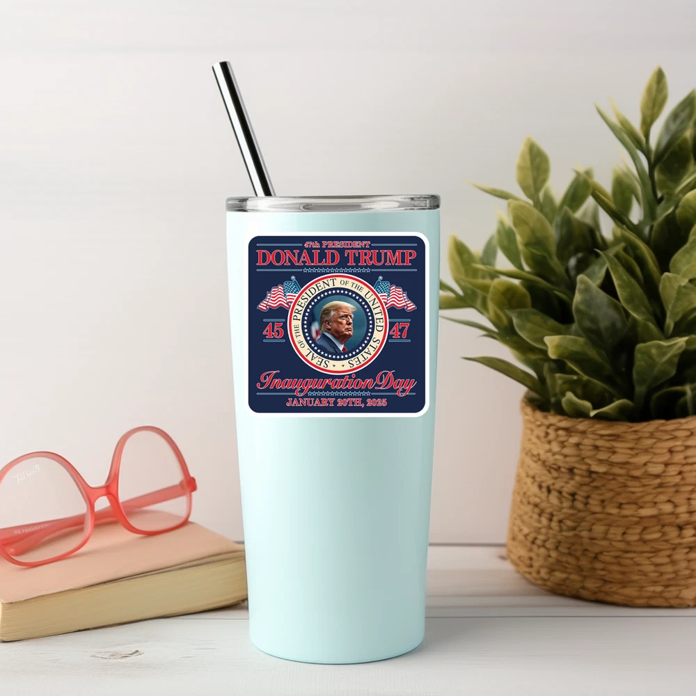 Celebrate a historic moment with this "Donald Trump 47th President Inauguration Day" sticker, honoring Trump's anticipated return to the Oval Office on January 20, 2025. Featuring a bold design with the official presidential seal, American flags, and "45" and "47" to signify his unique two-term presidency, this commemorative decal is perfect for supporters and collectors alike. Ideal for adding a patriotic touch to your belongings, this sticker is designed to keep the memory of this monumental day alive. Note: Best suited for indoor use and not intended for prolonged outdoor exposure or UV light. Key Features: Commemorative Inauguration Day Design – Showcasing January 20, 2025, for Trump’s historic second term. Detailed Presidential Seal – Includes the presidential seal and patriotic elements for a timeless look. Durable Vinyl Material – Ideal for indoor surfaces like laptops, notebooks, and binders. Easy Application and Removal – Applies smoothly without leaving residue. Not suitable for extended outdoor use or UV exposure Add this iconic "47th President" sticker to your collection or gift it to a fellow supporter to commemorate Trump’s return as the 47th President of the United States!