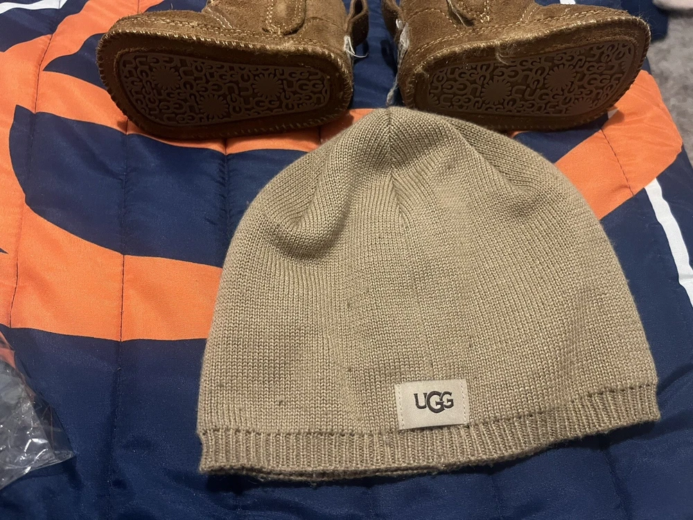 NEW UNISEX INFANTS CHESTNUT UGG BABY NEUMEL BOOTIES & BEANIE. Condition is Pre-owned. Shipped with USPS Ground Advantage.