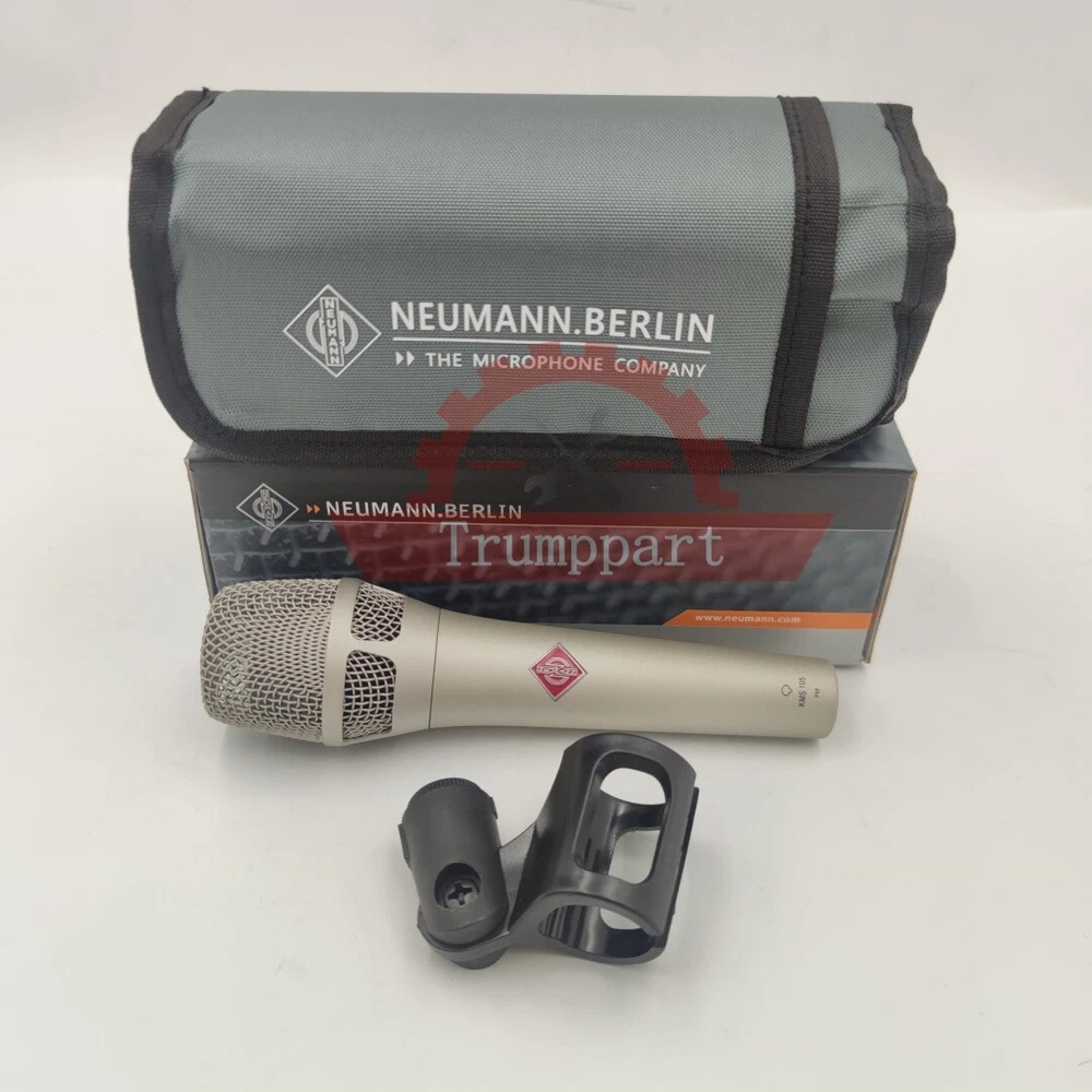 Neumann KMS 105 Supercardioid Condenser Handheld Vocal Microphone KMS 105 Studio grade stage microphone for vocalists. Supercardioid pickup pattern. Supercardioid pattern with excellent feedback rejection Studio quality condenser capsule Transparent sound with a gentle treble lift Highly effective, foam-free pop filter NEUMANN SOUND ON STAGE The KMS 105 is a studio grade vocal microphone for stage use. Its precision manufactured condenser capsule offers true Neumann sound quality, combined with all the virtues of a rugged stage microphone: excellent pop protection, low handling noise, enormous SPL capability, and high feedback resistance, thanks to its tight supercardioid pattern. STUDIO QUALITY FOR STAGE VOCALS The KMS 105 brings studio sound quality to the stage. Unlike usual stage microphones, which use dynamic capsules, the KMS 105 is equipped with a true condenser microphone capsule offering the superior clarity that made Neumann studio microphones famous all over the world. At the same time, the KMS 105 possesses the ruggedness required of a stage mic, thus refuting the myth that condenser microphones must be “fragile”. The KMS 105 can stand enormous sound pressure levels of up to 150 dB without clipping, and its tight, frequency-independent supercardioid pattern ensures high gain before feedback. The KMS 105 has a much smoother frequency response than dynamic microphones and an airy top-end. Compared to dynamic microphones, the Neumann KMS 105 has a vastly superior transient response resulting in a more immediate, more emotional vocal sound. In practical terms: effortless intelligibility, without the usual EQ boosts – which further improves feedback resistance. As a stage microphone, the KMS 105 is optimized for close miking; a fixed low cut filter compensates for the proximity effect and ensures clear bass, even if the singer’s lips touch the microphone. The headgrille is made of hardened steel and features a carefully designed multi-level pop filter made of wire gauze. Despite its effectiveness, this aco ustic filter does not cause any sibilance problems or compromise the capsule’s directivity. The head amplifier is protected by a thick-walled housing. Its transformerless output minimizes electromagnetic interference, such as hum. Because of its low output impedance of only 50 ohms, the KMS 105 can drive very long cable runs of up to 300 m (1000 ft) without transmission losses. APPLICATIONS The KMS 105 is primarily designed as a handheld vocal microphone but can be used for other stage applications as well, due to its high SPL capability and wide dynamic range. Examples include percussion, saxophone, trumpet, trombone, harmonica, acoustic guitar, and guitar cabinets. Thanks to its superior sound quality, the KMS 105 is also an excellent microphone for home recording and broadcast applications. Because it is optimized for close mic placement, the KMS 105 will pick up a dry sound with very little ambience, which is a big advantage in untreated rooms. Tight supercardioid pattern without off-axis coloration Unaffected by extreme sound pressure levels Rugged construction Feedback resistant Built-in pop screen Very low handling noise Acoustical operating principle : Pressure gradient transducer Directional Pattern : Supercardioid Frequency Range : 20 Hz ... 20 kHz Sensitivity at 1 kHz into 1 kohm : 4.5 mV/Pa ± 1 dB equ. -47 dBV Rated Impedance : 50 ohms Rated load impedance : 1 kohms Equivalent noise level, CCIR¹⁾ : 28 dB Equivalent noise level, A-weighted¹⁾ : 18 dB-A Maximum SPL for THD 0.5%²⁾ : 150 dB Signal-to-noise ratio, CCIR (re. 94 dB SPL)¹⁾ : 66 dB Signal-to-noise ratio, A-weighted (re. 94 dB SPL)¹⁾ : 76 dB Maximum output voltage : 12 dBu Supply voltage (P48, IEC 61938) : 48 V ± 4 V Current consumption (P48, IEC 61938) : 3.5 mA Matching connector : XLR 3 F Weightapprox. 300 g Diameter : 48 mm Length : 180 mm 1) according to IEC 60268-1; CCIR-weighting acccording to CCIR 468-3, quasi peak; A-weighting according to IEC 61672-1, RMS 2) measured as equivalent el. input signal