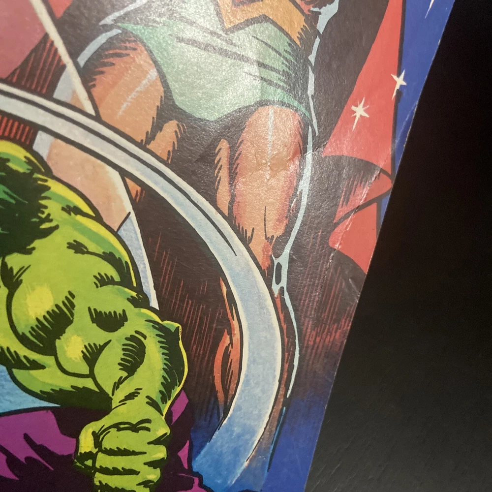 This vintage 1980 Marvel Incredible Hulk coloring book is a must-have for any comic book collector or fan of the beloved character. Featuring the Hulk in all his green glory, this softcover book is from the Bronze Age era of US comics and is sure to transport you back in time. The artwork is in color and is perfect for those looking for a fun and creative activity. The book is in good condition and is a great addition to any collection. The Incredible Hulk is a classic character from the Marvel universe and this coloring book is a must-have for any fan. Don't miss out on the chance to own a piece of comic book history.