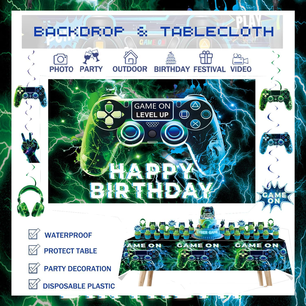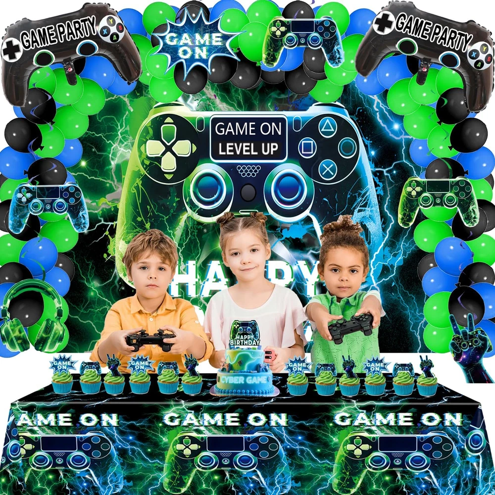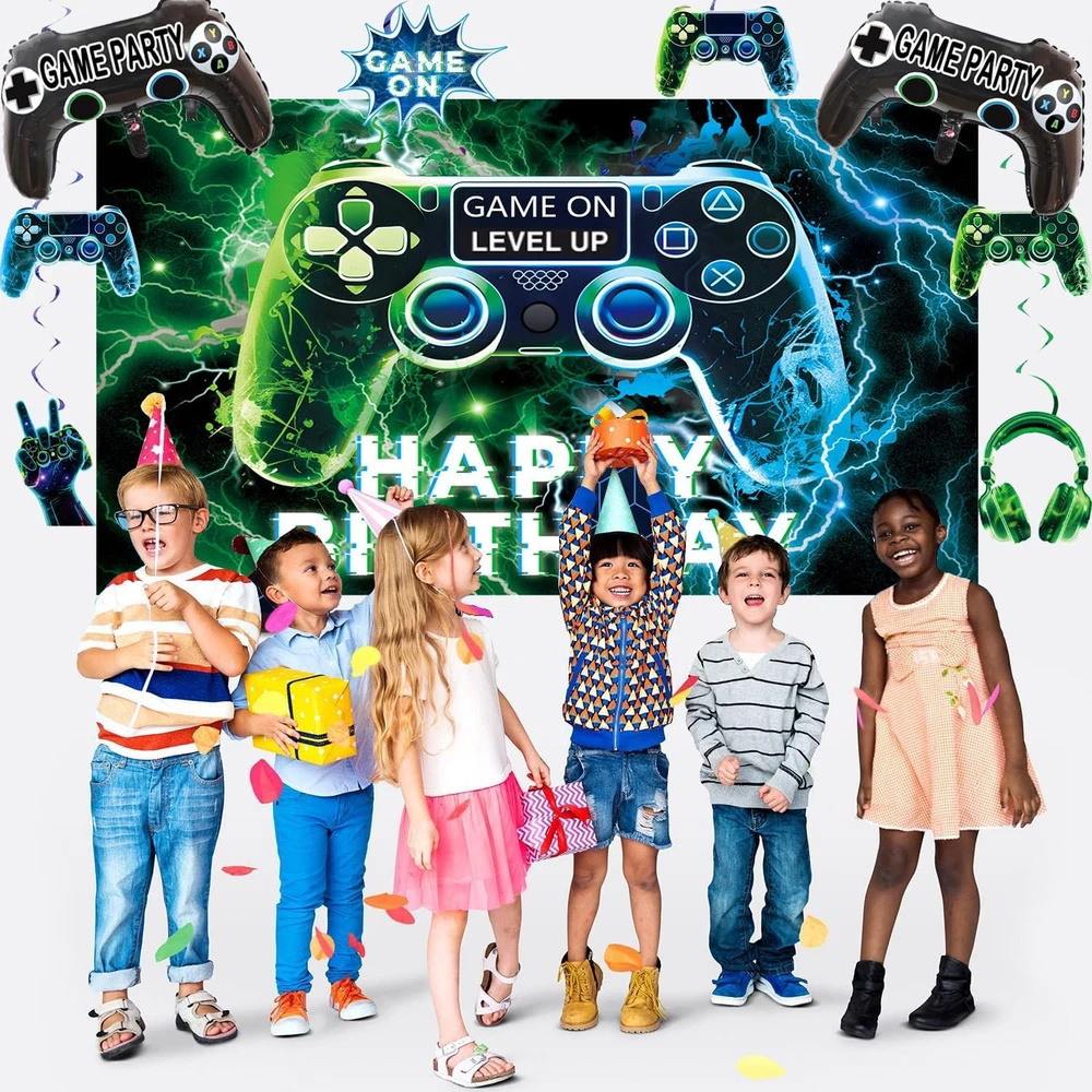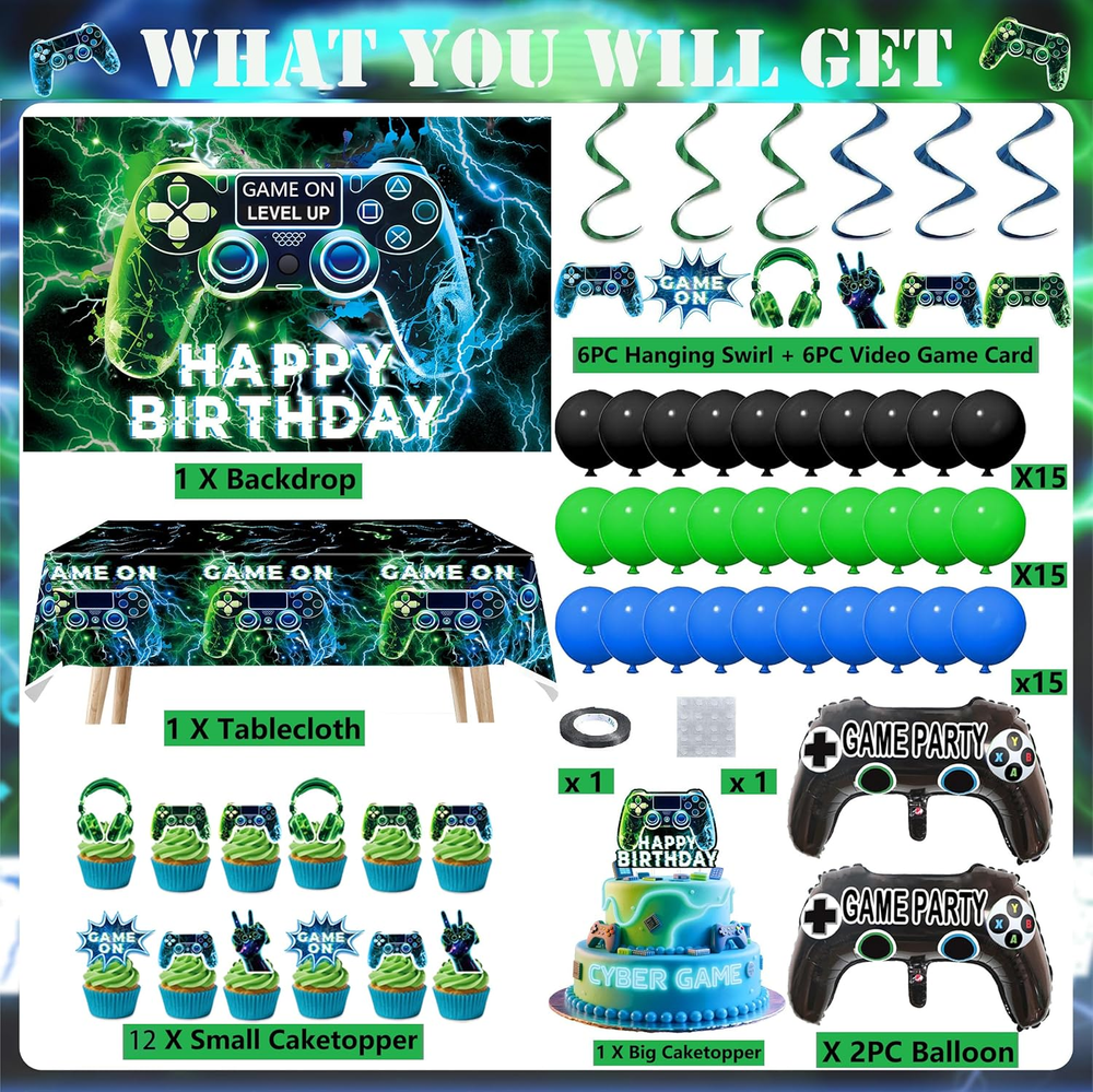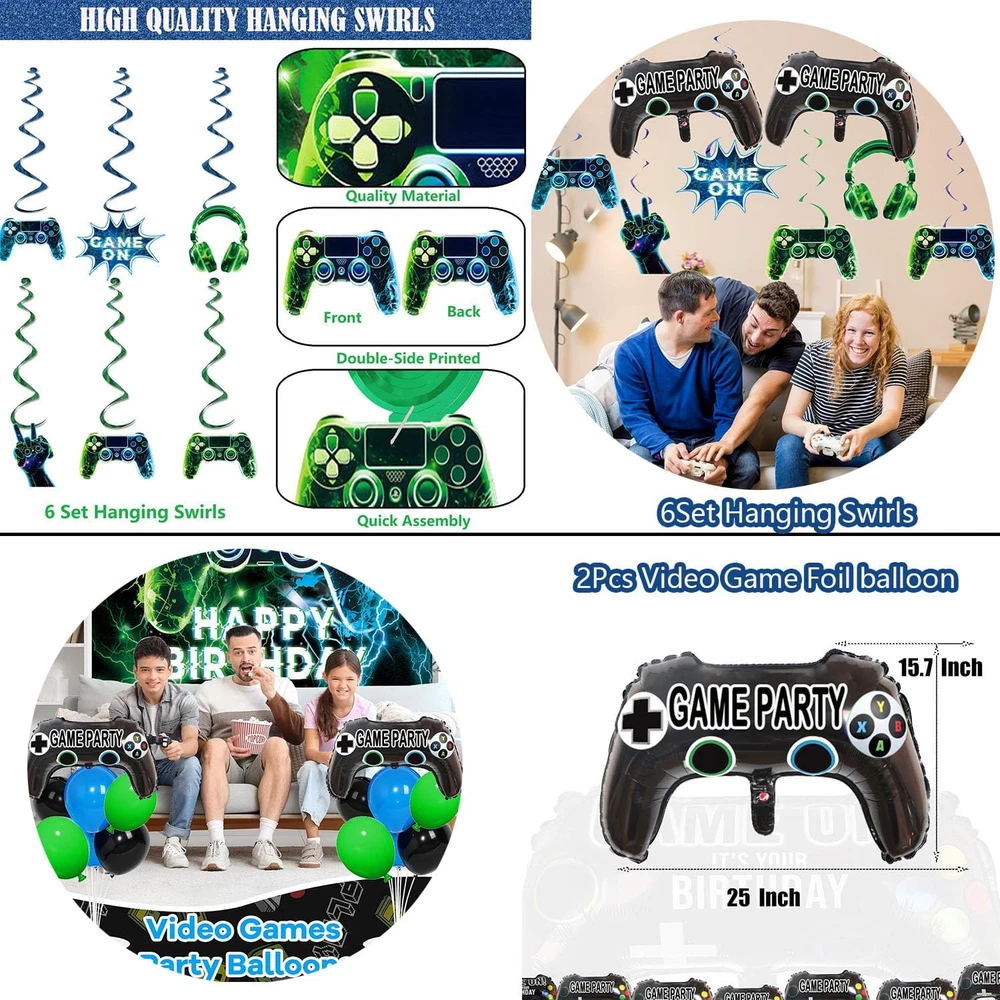 Store New Arrivals Add to Favorite View Feedback Contact Fast deliveries to the customer's home Quality customer service John Make the customers happy! NEW Video Game on Theme Party Supplies Sett: Decorations with Happy Birthday Gaming Backdrop, Game Table Covers ,Hanging Swirls , Cake Topper, Foil Gamer Balloons, Multi-Color Balloons Description [Great Value Pack:]:Friends or family love gaming? This is the perfect set for your party, both kids and adults would love it if you are fans of video game on! Wow your guests or family and create exciting atmosphere in the minute they see it! Use banners and balloons to decorate the party, use them to make backdrop or photo booth, bring unforgettable moments and beautiful memories! [Great Value Pack:]:Complete Gaming Party Set: Elevate your gaming-themed party with our all-in-one pack! Includes a reusable backdrop, waterproof PE plastic table cover, 6set Hanging Swirls,45 latex balloons in dark blue, black, and green, 2 video game controller-shaped foil balloons, and 13 durable cake toppers. [Great Value Pack:] – The non-toxic backdrop is foldable and fade-resistant. The thick PE table cover wipes clean for reuse. cake toppers withstand repeated use, and foil balloons hold helium for 48+ hours. [Great Value Pack:] – Four reinforced metal grommets on the backdrop allow easy hanging on walls, doors, or stages using ropes or hooks. Pre-inflated balloons include quick-seal strips – no tools required. [Great Value Pack:] – Reuse the backdrop, table cover, and cake toppers for multiple events. High-quality materials save costs compared to single-use decorations. Product description Item model number video game party-02 Color Blue , Green Pattern video game Product Dimensions 0.1 x 0.1 x 0.1 inches Material paper, plastic Shape video game Item Weight 10.2 ounces Theme Video Game Manufacturer recommended age 1 month and up Occasion birthday Included Components function(f) {var _np=(window.P._namespace("DetailPageProductOverviewTemplatesJava"));if(_np.guardFatal){_np.guardFatal(f)(_np);}else{f(_np);}}(function(P) { P.when('A').execute(function(A){ A.on('a:truncate:po-attribute-truncate-2:updated', function(data) { var isTruncated = !data.truncateInstance.getIfTextFits(); var seeMoreElement = document.getElementById('po-attribute-see-more-id-2'); if(seeMoreElement) { seeMoreElement.style.display = isTruncated ? '' : 'none'; } }) }); })); Elevate your gaming-themed party with our all-in-one pack! Includes a reusable backdrop, waterproof PE plastic table cover, 45 latex balloons in dark blue, black, and green , 6set Hanging Swirls . 2 video game controller-shaped foil balloons, and 13pcs durable cake toppers. See more ABOUT US We offer the best prices around on high quality products. Our E-store includes media such as books, movies, music and games while offering electronics, toys, sporting apparel, clothing, tools, general home, garden items and more. SHIPPING We are always working hard to ensure your package arrives as soon as possible. Please understand that some factors like weather, high postal traffic, and the performance of shipping companies are outside of our control. We offer free shipping to the lower 48 states and ship within 2 business days of payment, usually sooner. We do not accept P.O. Boxes. Please provide a physical address. For shipping outside of the continental USA, we only use eBay's Global Shipping Program. The item is shipped to KY and then sent to the rest of the world. International customers are responsible for all duties and taxes. Continue to 'check out' to calculate costs for shipping the item to your country. Messages regarding eBay's Global Shipping Program MUST be directed at eBay EXCLUSIVELY. RETURNS We offer a 30-Day Return Policy on items in which you are not completely satisfied with. You have the option of a full-refund or an exchange of the item. No returns are available on items shipped outside of the USA PAYMENT We accept PayPal. CONTACT US This page content is yet to come Please ad us to your favorite seller and visit again later Thank You CUSTOMER SATISFACTION We try our very best to make sure every customer is completely satisfied. If there's a problem, message us! We're happy to help. WE ACCEPT