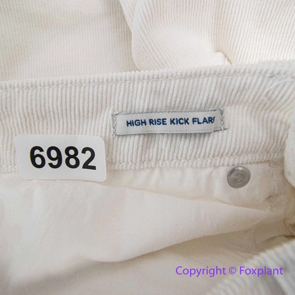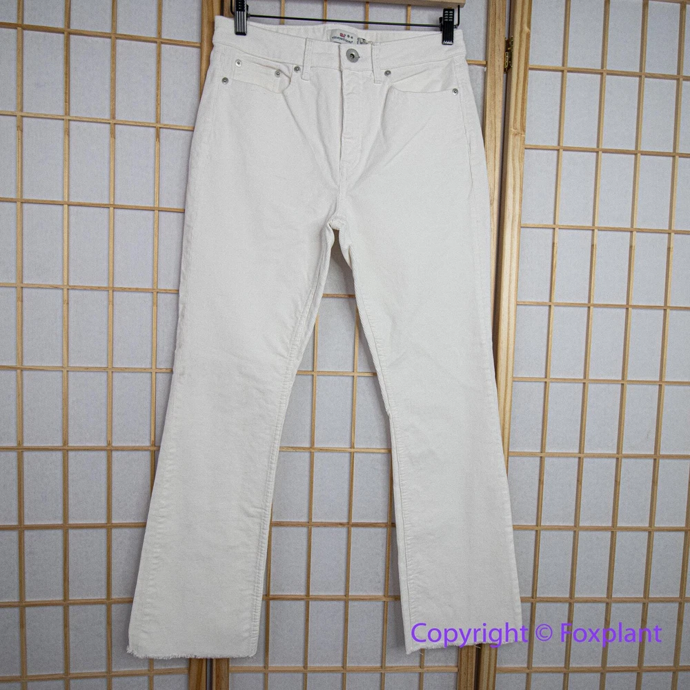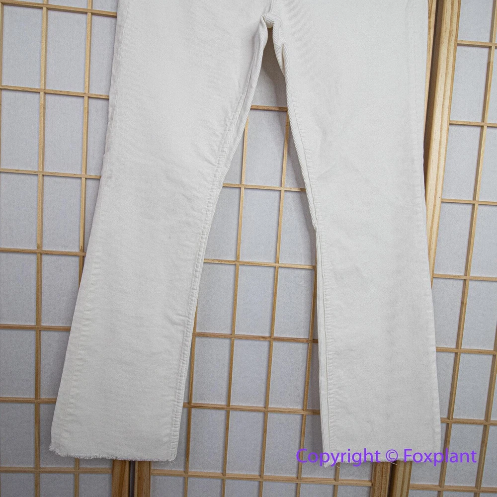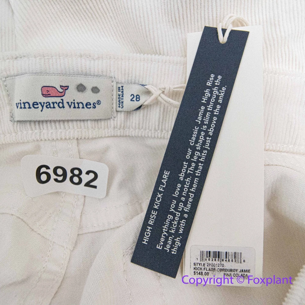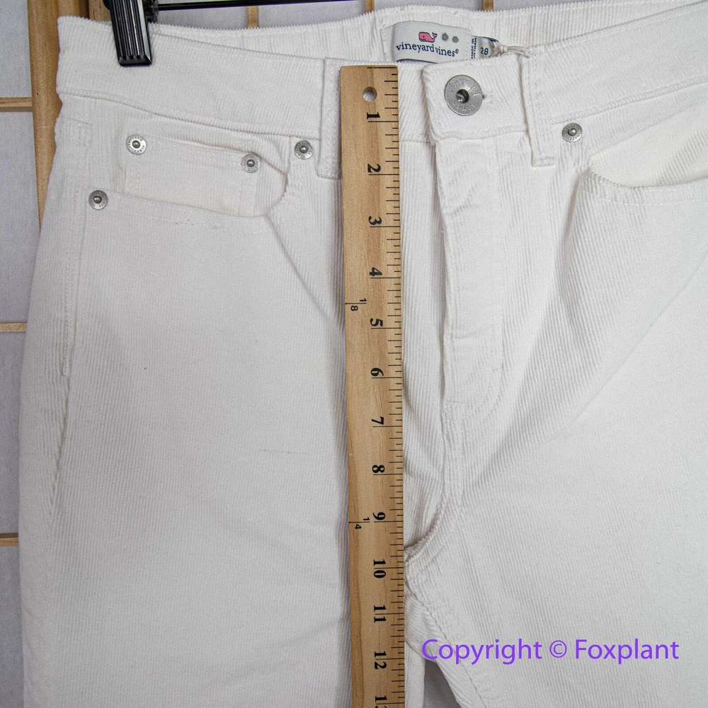NEW Vineyard Vines Pants Jeans Cotton Kick Flare Corduroy Pina Colada, 28 Please note: New with tags, some marks as shown. Zip fly with button closure Belt loops Five-pocket style Silver-tone hardware Corduroy fabrication Flared-leg silhouette, high rise Raw-edge, frayed hem Imported 75% cotton/23% viscose/2% spandex Machine wash The measurements shown are approximate and are provided as a helpful reference, but not a guarantee of fit. Sometimes inseam measuring from the crotch to the hem with a yardstick may yield a slightly different result compared to using a soft tape measure along the seam. The actual colors may vary due to differences in lighting conditions and computer monitor settings.