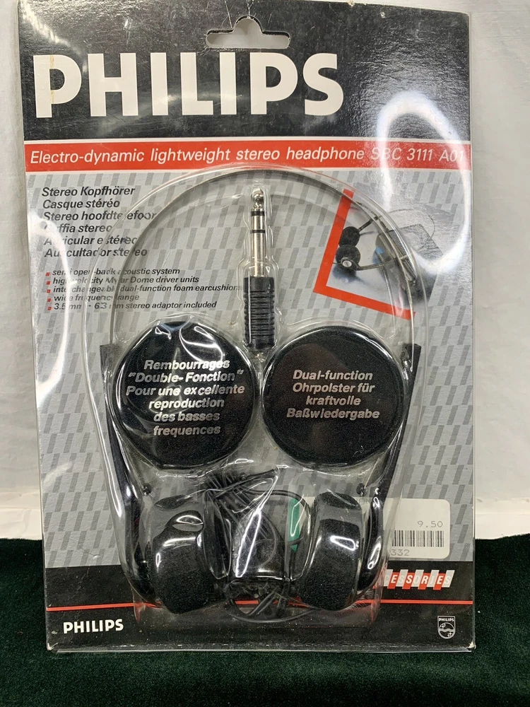 NOS. Tape at the back has separated, but no signs of use. See pics. Age unknown. Dent in package. Foam ear covers do not seem to be shedding.