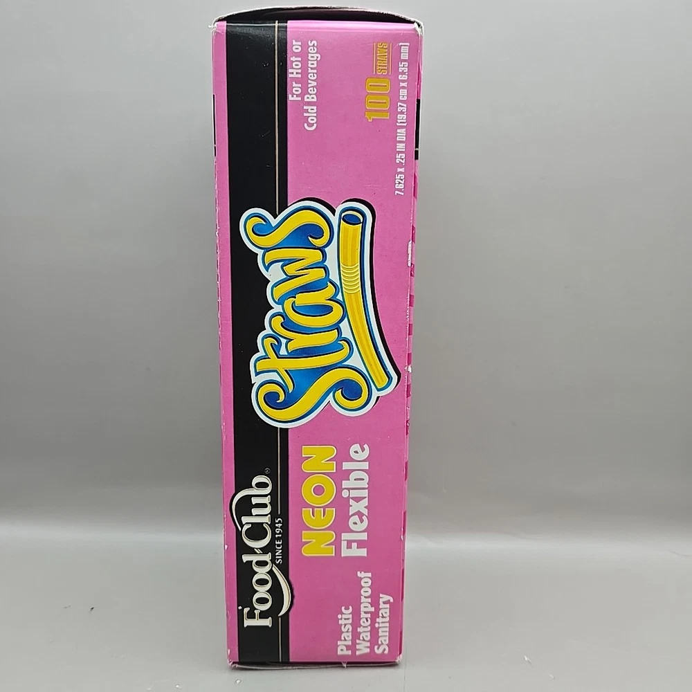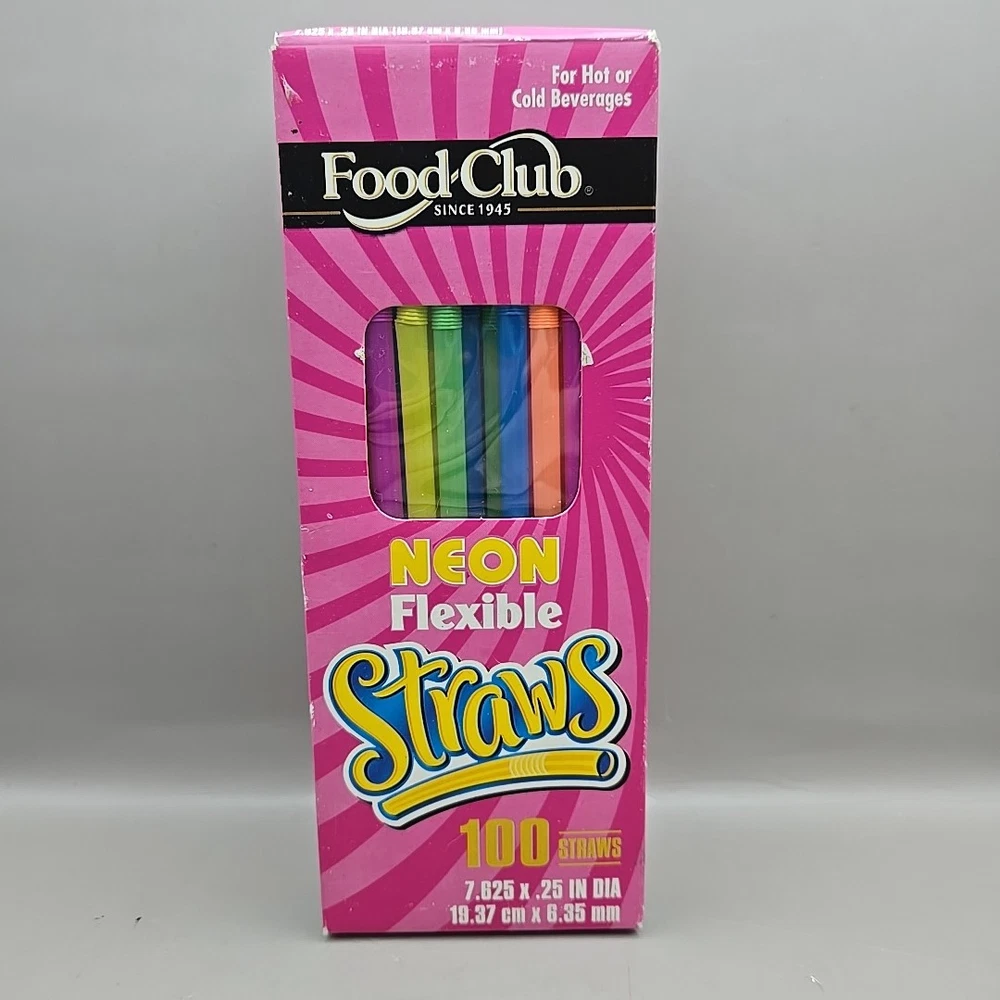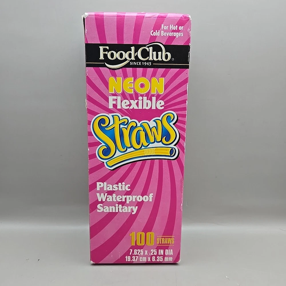 NEW Vintage Topco Food Club Multicolor Neon Flexible Straws 100 Count Sealed Box