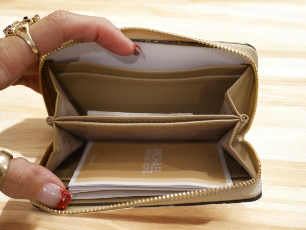 Este wallet de MK no es el primero que compro, es perfecto, muy lindo y apropiado, parece un espejo con su brillo... nuevo completamente, a un precio apropiado teniendo en cuenta todo ello y siendo Michael Kors. Lo recibí rápido, presentable, y con una nota del vendedor agradable. Muchas gracias!!