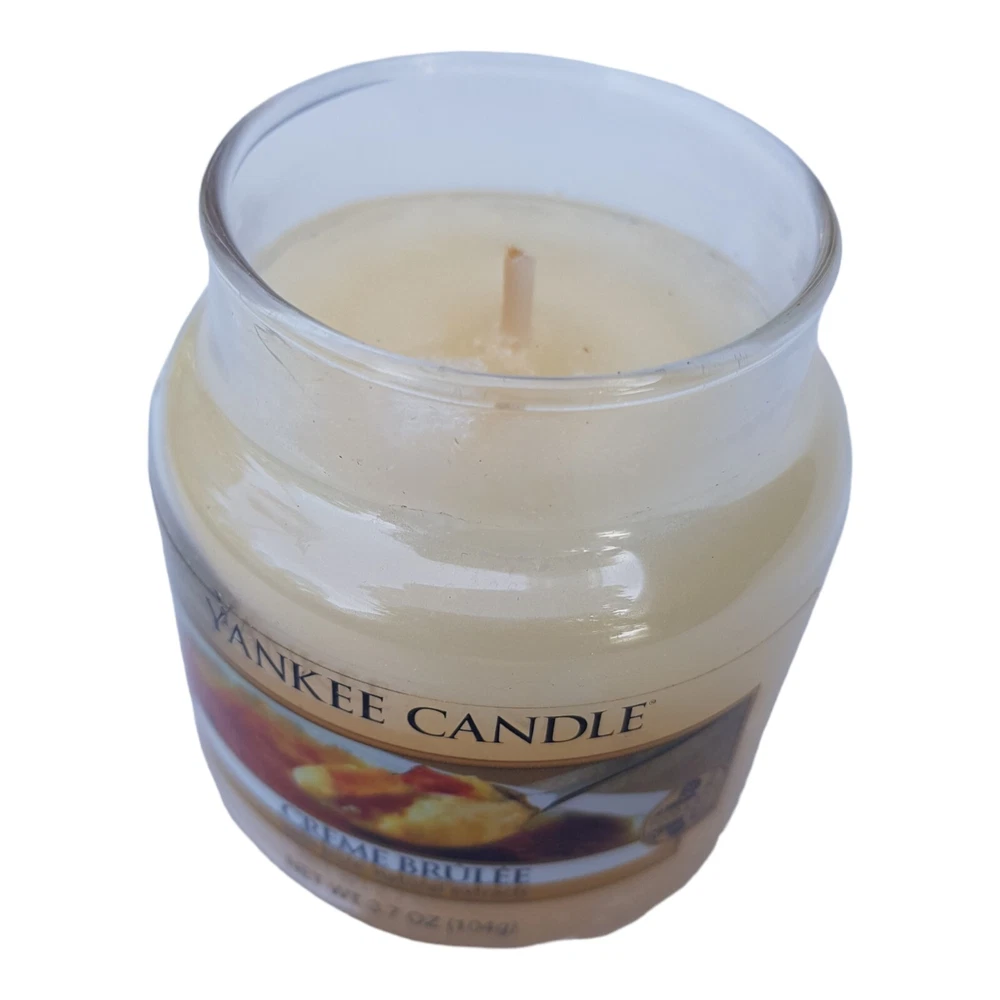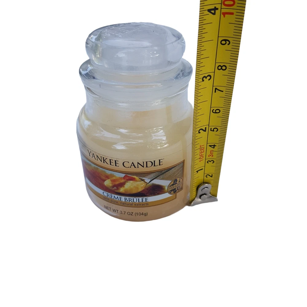 NEW Yankee Candle Creme Brulee Candle 3.7 OZ Small Jar HTF Food & Spice Candle. Unused. See photos for condition details. With a burning time of 25-40 hours, you can enjoy the sweet and comforting scent of Creme Brulee for days to come.