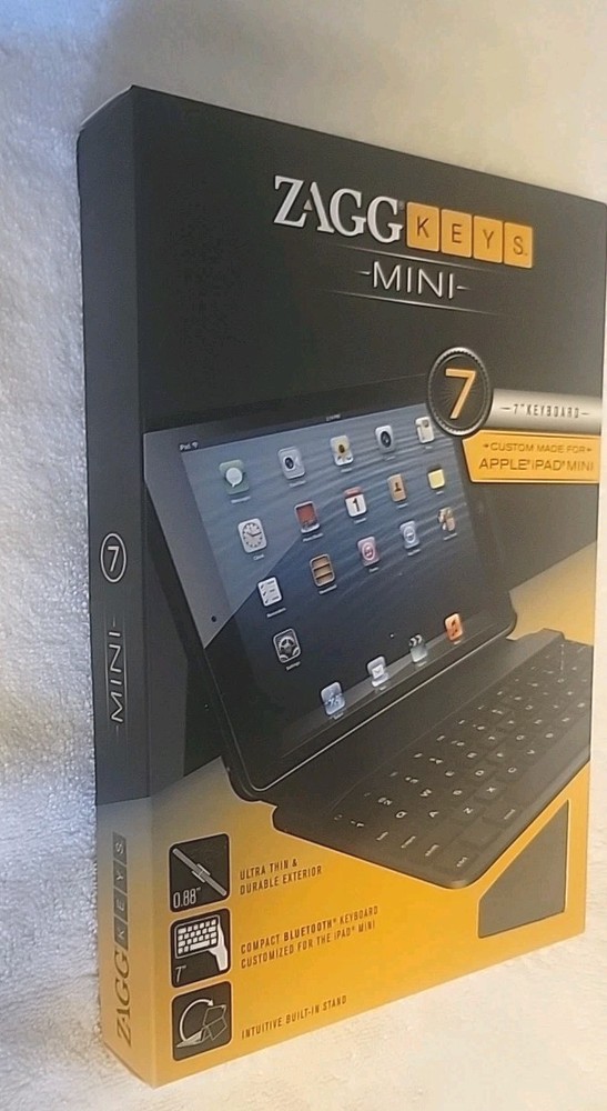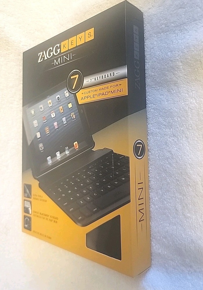 I have 3 available for sale. They are brand new, mint, and sealed. My home is clean and smoke-free. Please view pics. The NEW ZaggKeys Apple iPad Mini 7" BLACK Folio Bluetooth Keyboard & Case Stand by ZAGG is a versatile accessory for your Apple iPad Mini. This keyboard folio case in black is designed specifically for the 7-inch screen size of the iPad Mini, providing a convenient and secure way to type and protect your device. With Bluetooth connectivity, it allows for easy pairing with your iPad and offers a sleek and compact design for on-the-go use. The ZaggKeys folio also includes a stand for added convenience when watching videos or using your iPad for various tasks.