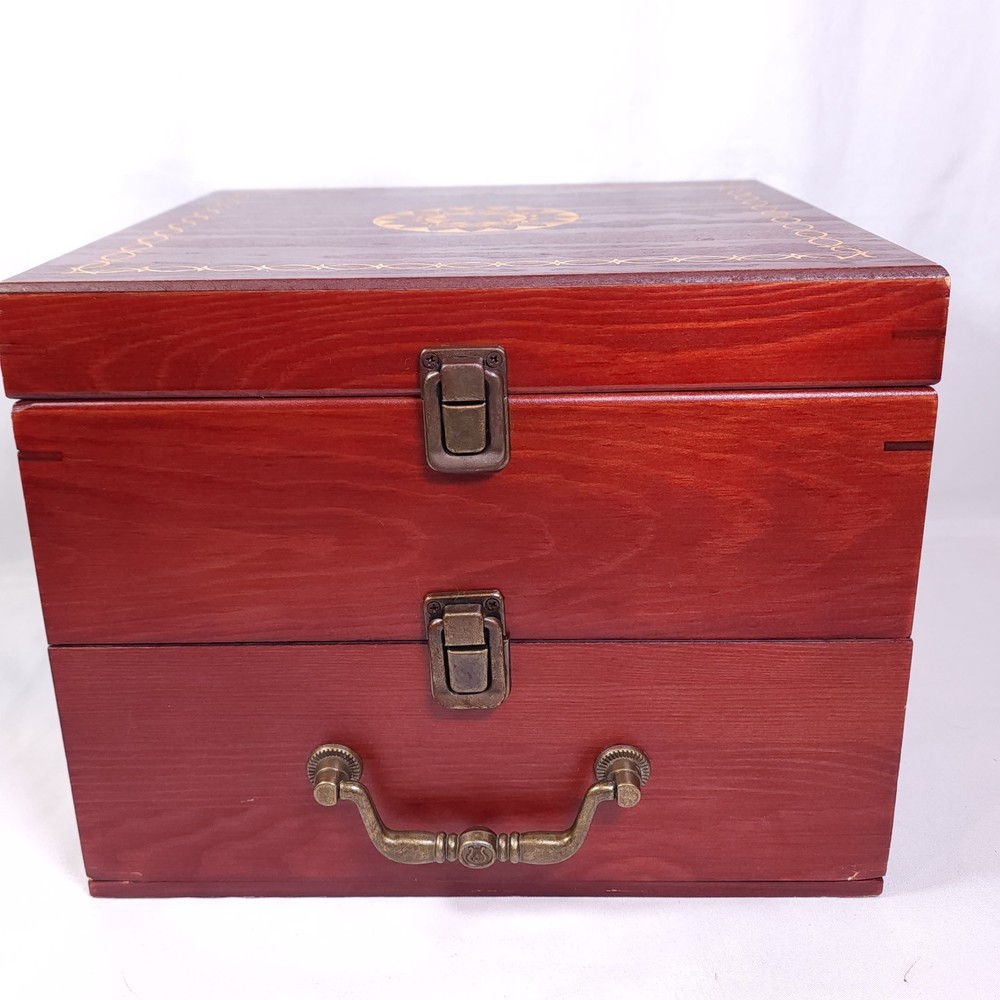 NEW doTERRA Label Stickers + 2-Tier Wooden Storage Case. Case is unbranded, fits 72 full-size (15ml) Bottles of Essential Oils. Some stickers have been used, but there's still tons. Case is in good condition, minor cosmetic damage to one corner of drawer as pictured, no other flaws noted. Please see all pictures for exact cosmetic condition and other details, as they are part of the description as well, and ask any questions before purchasing. We are a husband and wife team with a growing family, and greatly appreciate your support of our small business. Please browse our eBay store for a variety of other essential oils. We hope you enjoy this set!