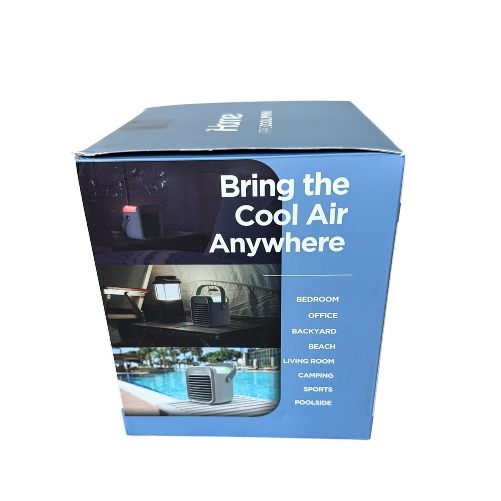 NEW iHome ProCool Mini Portable Air Chiller Personal Space Cooler New in box - open box, tested and working A compact and convenient cooling solution, the iHome ProCool Mini portable air chiller offers personalized climate control wherever you need it. Featuring a built-in battery that provides rechargeable, cordless operation for up to 5 hours of use, this device is also ultra-quiet, making it perfect for bedside tables or office desks. With an adjustable fan offering three speeds and chilled humidity capabilities, this air chiller provides a fine cooling mist. Designed for ease of use, the iHome ProCool Mini can be enjoyed in two ways: chilled air via a reusable cooling screen that can be soaked in water or placed in the freezer, or humidified air by filling the humidifier tank with cold water. Ideal for use in bedrooms, offices, or even outdoor settings like camping or poolside lounging, this portable air chiller brings cool air anywhere you need it. Cooling Method: Air Type: Portable Air Conditioner Features: Portable, Humidifier, Mini, USB Port, Adjustable Fan Speed Number of Cool Speeds: 3 Mounting Location: Desk/Tabletop Area Covered: 20-40 sq ft Personal Air Cooler, Space Cooler, Mini Air Conditioner, Rechargeable Air Chiller, Cordless Air Cooler, Humidifier, Desk Fan, Bedside Fan, Office Fan, Camping Fan, Portable AC