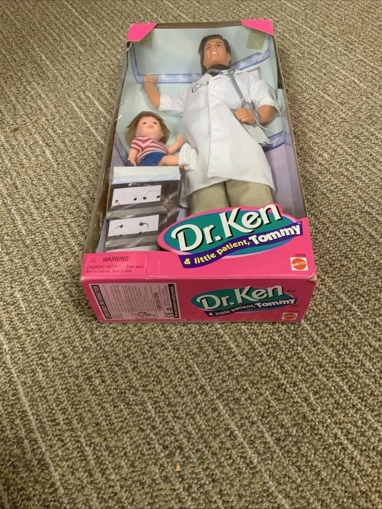 This rare and original 1997 Dr. Ken And Little Patient Tommy 18898 Barbie set is perfect for collectors and fans of the beloved franchise. The set includes a Caucasian boy doll, accessories, shoes, and a hard plastic body that measures 12 inches in length. The doll has brown straight hair, brown eyes, and a light complexion. This play doll is in its original and unopened packaging, making it a great addition to any collection. The set is perfect for all occasions, whether for display or play. The doll is an original licensed reproduction from Mattel, and the packaging is in excellent condition. Add this vintage piece to your collection today!