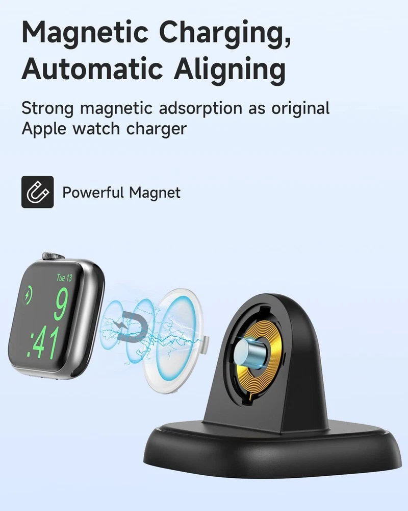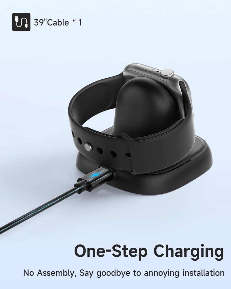 NEWDERY Charger Stand for Apple Watch, Portable Watch Charger for iWatch with US Features: [One Step Fast Charging] NOTE: The charger can't charge the newest system (watchOS 11). You can simply connect the charging stand for apple watch into a wall plug using the USB C cable since it just requires minimal assembly. The charging station is equipped with intelligent chip which helps fast charging in about 2 hours. (2.5 hours for Series 7, 3.5 hours for Series Ultra) [Strong Magnetic Design] NEWDERY watch charger for iWatch has built in magnetic modules which helps to align the Apple watch and makes it easier to charge. [Lightweight & Stable] The charger stand has an anti-slip base mat and 85g weight design which provides stability during usage. The watch charger compact and lightweight design makes the charger portable and can be carried around in daily use and also while travelling. [Universal Compatibility] The charger is portable with a wide variety of iWatches such as series 9,Ultra, SE, 8, 7, 6, 5, 4, 3, 2 (38mm 40mm 41mm 42mm 44mm 45mm 49mm version), Sport, Nike plus, Hermes and Apple Watch Edition. (Note: It doesn't charge Watch Series 1) [Package Includes] The package includes 1 wireless charging stand and 1 USB-A to USB-C cable. Features: [One Step Fast Charging] NOTE: The charger can't charge the newest system (watchOS 11). You can simply connect the charging stand for apple watch into a wall plug using the USB C cable since it just requires minimal assembly. The charging station is equipped with intelligent chip which helps fast charging in about 2 hours. (2.5 hours for Series 7, 3.5 hours for Series Ultra) [Strong Magnetic Design] NEWDERY watch charger for iWatch has built in magnetic modules which helps to align the Apple watch and makes it easier to charge. [Lightweight & Stable] The charger stand has an anti-slip base mat and 85g weight design which provides stability during usage. The watch charger compact and lightweight design makes the charger portable and can be carried around in daily use and also while travelling. [Universal Compatibility] The charger is portable with a wide variety of iWatches such as series 9,Ultra, SE, 8, 7, 6, 5, 4, 3, 2 (38mm 40mm 41mm 42mm 44mm 45mm 49mm version), Sport, Nike plus, Hermes and Apple Watch Edition. (Note: It doesn't charge Watch Series 1) [Package Includes] The package includes 1 wireless charging stand and 1 USB-A to USB-C cable. eBay integration by