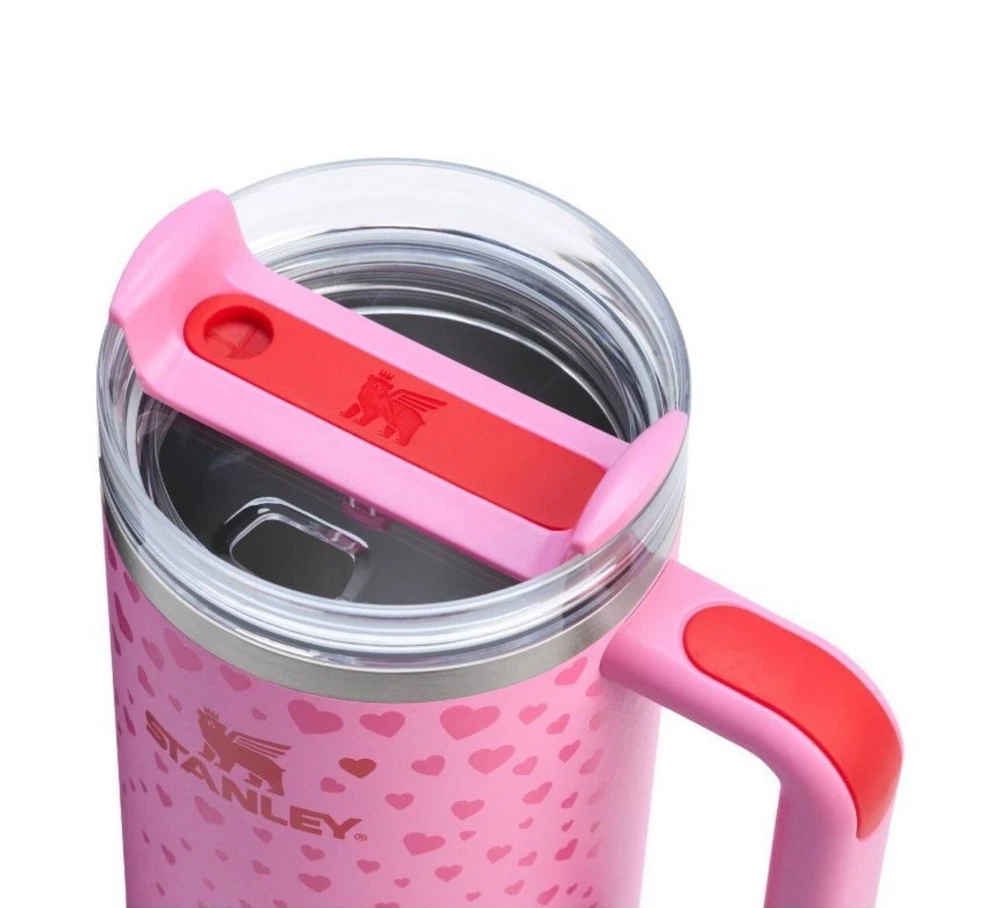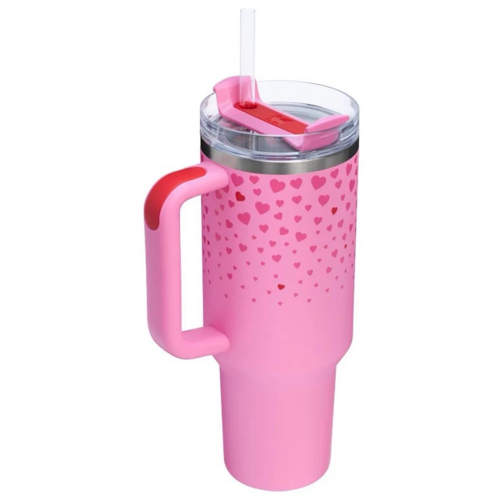 Highlights 11 hours cold 2 days iced 18/8 recycled stainless steel Double-wall vacuum insulation FlowState™ 3-position lid Car cupholder compatible Dishwasher safe BPA-free Description Share your love with the special ones in your life with a Valentine’s Quencher from Stanley 1913, exclusively at Target. Pick from the sweetest rich pink or deep red hues, featuring matching cascading hearts. Made for gifting, a card label is included that’s perfect for your Valentine’s Day baskets, best friends and even as a little something for yourself. The 40-ounce Quencher H2.0 FlowState™ Tumbler keeps your drink ice cold for hours, thanks to double-wall vacuum insulation. The versatile FlowState™ 3-position lid has three sip settings: one for the reusable straw, one without and the option to rotate the silicone cover shut. It fits right in your car cupholder when you’re headed to your Valentine’s Day celebration.