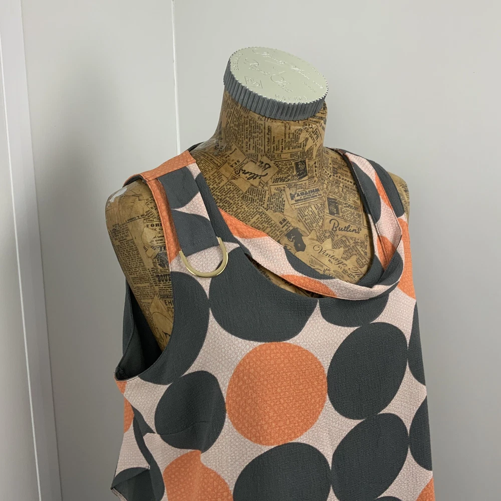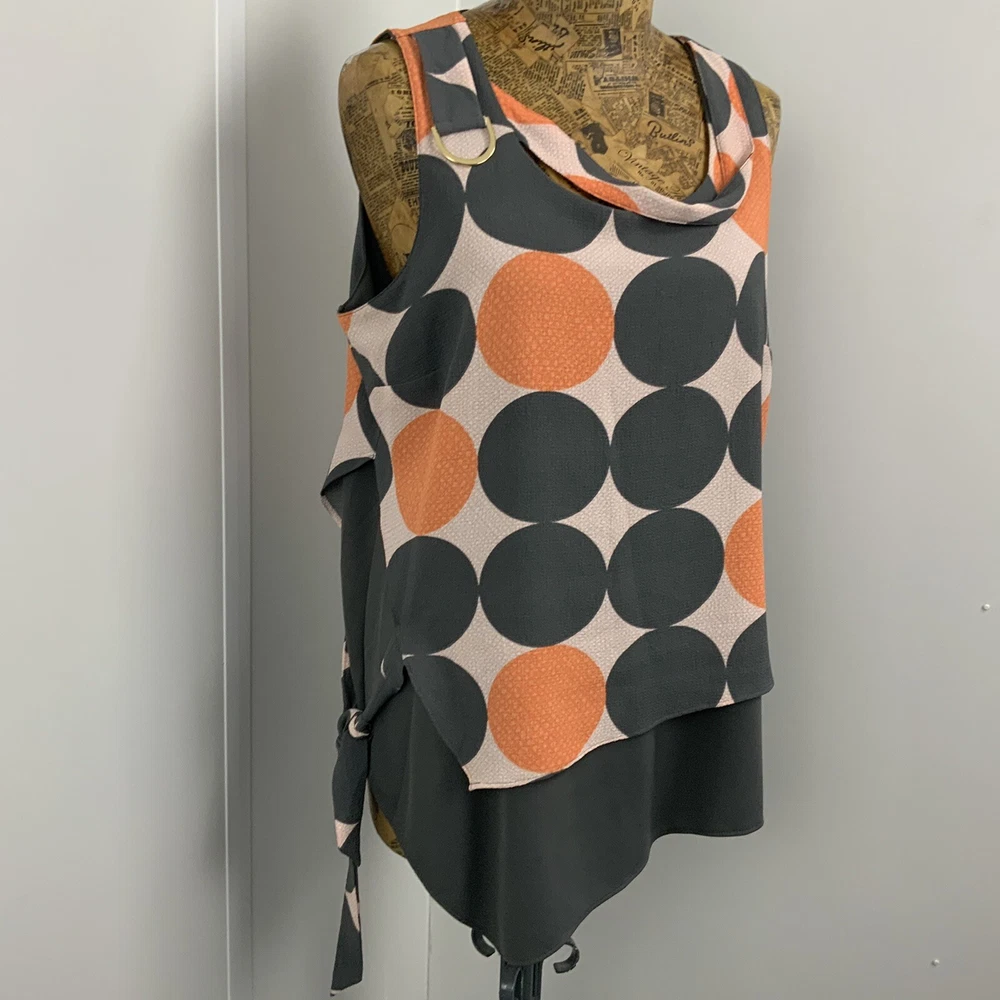 NEXT BLOUSE VEST Grey Orange 14 Chiffon Formal Asymmetrical Drape Tank Womens