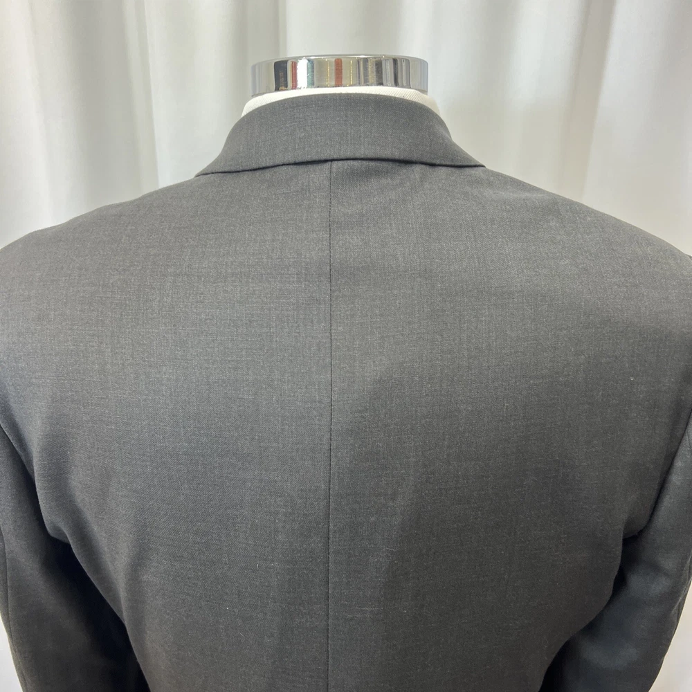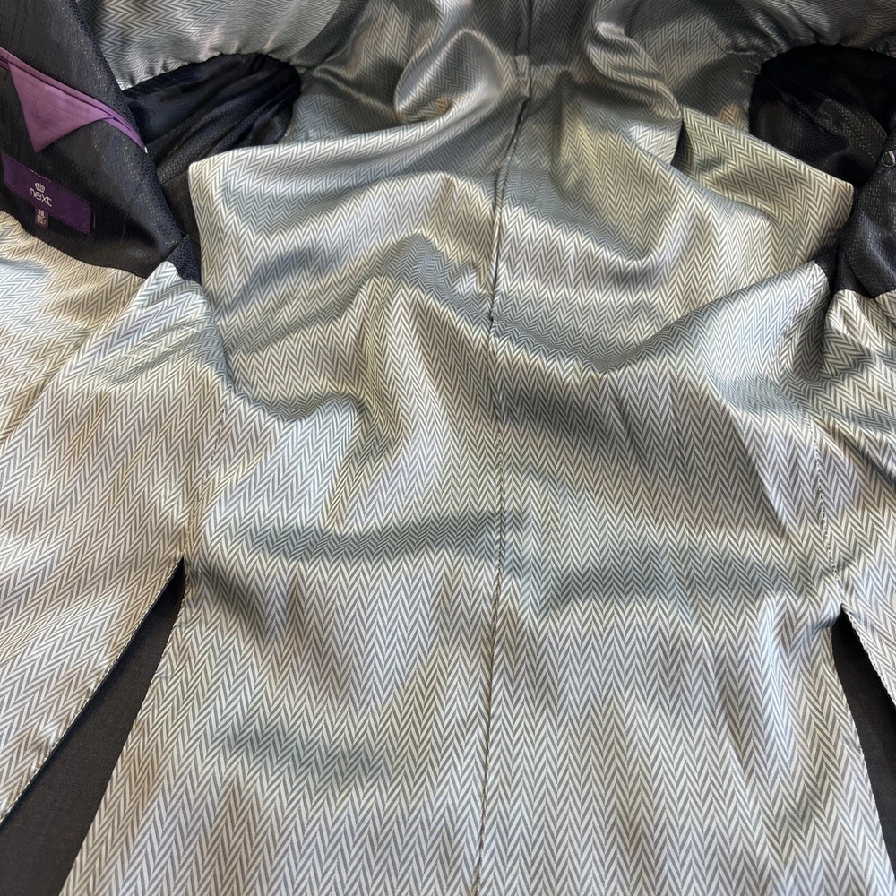NEXT TAILORING Dark Grey Wool Blend Slim Fit 2 Piece Suit Jacket Chest: 40L" Inside pockets: 4 Front pockets: 2 Breast pocket: 1 Buttons to each cuff: 4 Buttons to front: 2 Back vents: 2 Shoulder to cuff: 27" Armpit to cuff: 18.5" Armpit to armpit when laid flat: 21" Shoulder to shoulder: 18" Collar to hem: 30" Trousers Waist: 34" Zip Front pockets: 3 Back pocket: 2 1 button & 2 hook fastening Inside leg: 33" (can drop 1.25") Width of hem at bottom of trousers: 8" AKD0008-244 Please note: Colours may slightly vary due to lighting conditions Each item undergoes meticulous hand-measured scrutiny; sizes may not align precisely with the label Review measurements and review the item description/photos before placing your bid Unfortunately, we cannot provide additional photos once items are listed The shirt and tie are not included unless explicitly stated in the listing Questions and concerns: Reach out to us through the ebay messaging system - we aim to respond within a maximum of 12 hours Ironing guidelines: Garments may arrive with minor creases Refer to the care label and use continuous steam when ironing We recommend dry cleaning for best results and peace of mind Your feedback matters: Please leave us a 5-star rating if satisfied For issues or concerns, please contact us before leaving feedback Returns: We offer a generous 30-day return period, via the ebay returns centre Please return items in their original packaging with all tags attached Buyers cover return shipping costs unless items are faulty or inaccurately listed