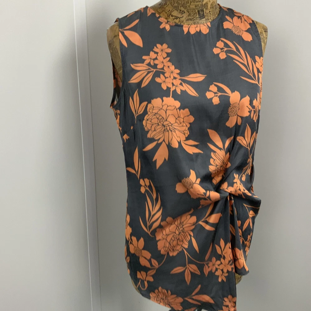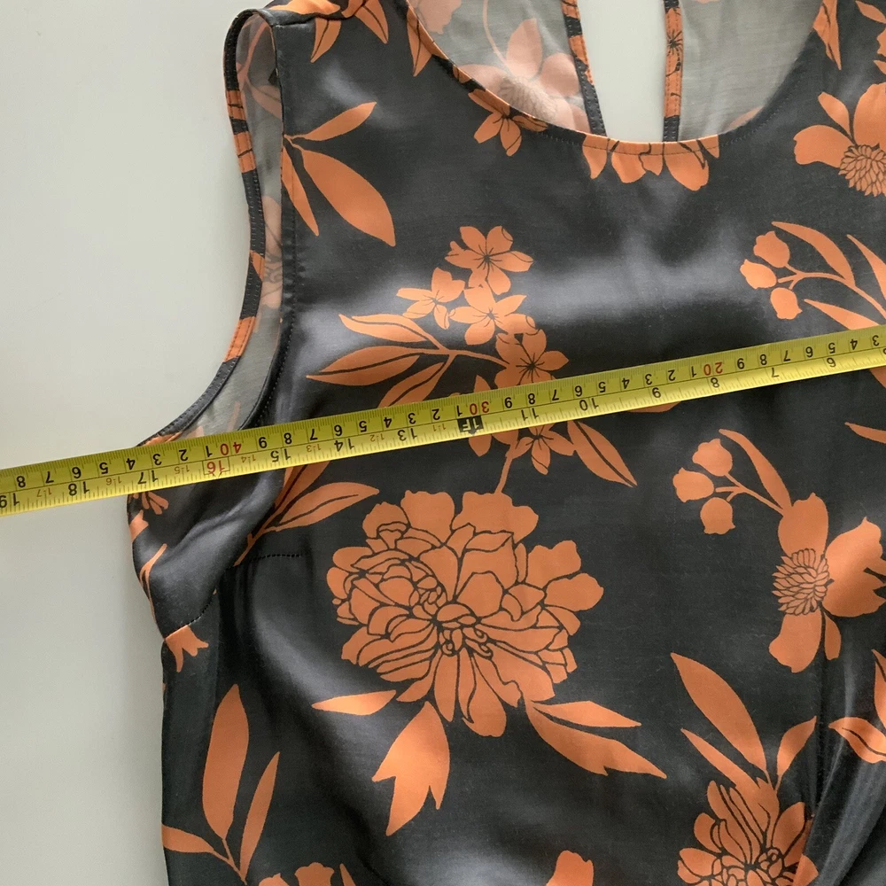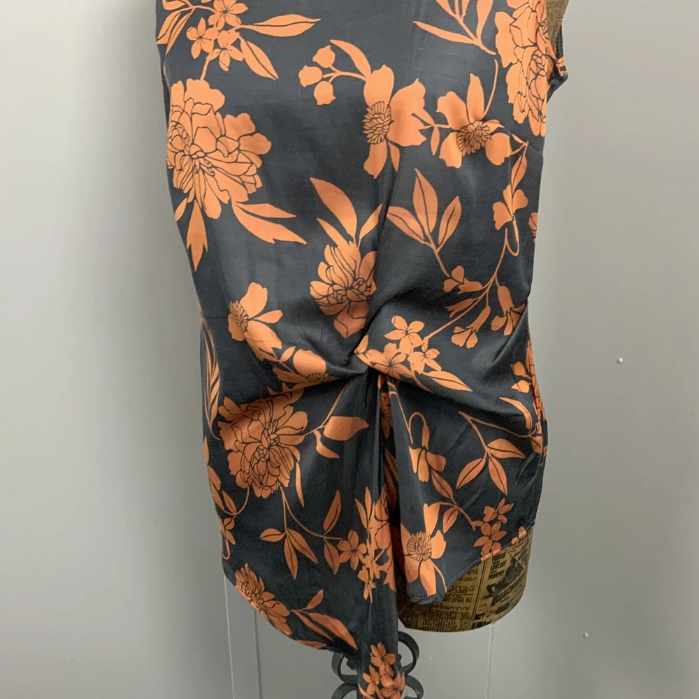 NEXT VEST TANK 8 Womens Grey Orange Floral Soft Finish Summer Top Asymmetrical