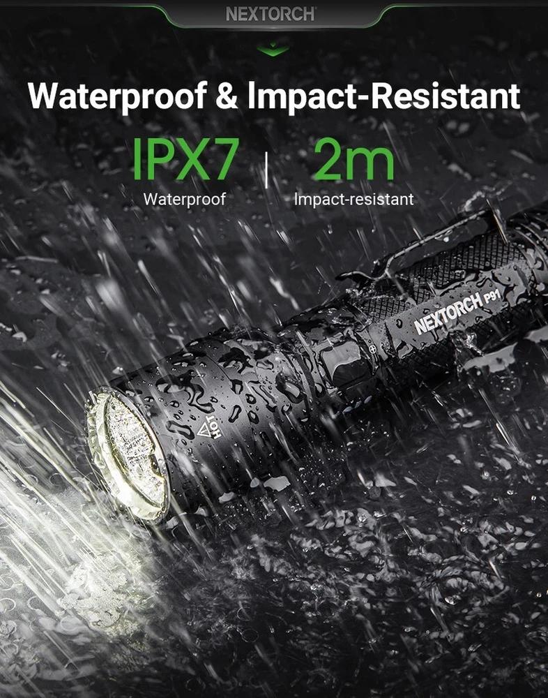 The new P91 delivers a staggering 5,000 lumens of scene-dominating output with dual-switch tactical control for instant threat assessment and area assessment. Built for law enforcement with a nano-ceramic strike bezel and concealed USB-C charging port that maintains the light's tactical profile. The dual-switch interface (side-switch for mode selection and a One-Step-Strobe back switch) puts both momentary activation and mode selection exactly where you need them. With five distinct output levels and dedicated strobe, this duty-ready platform adapts to any patrol scenario. TECHNICAL SPECIFICATIONS: OUTPUT: 5000 Lumens MODES: Momentary/45lm/350lm/1100lm/5000lm/Strobe BEAM THROW: Up to 300 meters BEAM INTENSITY: 22,500cd (peak) RUNTIME: Up to 60 hours (lowest mode) POWER: 21700 4800mAh Li-ion (included) DURABILITY: IPX-7 waterproof to 1m IMPACT RATING: 2-meter drop tested CONSTRUCTION: Aerospace aluminum with hard-anodized finish DIMENSIONS: 160mm x 36mm x 28.5mm WEIGHT: 165g (without battery)
