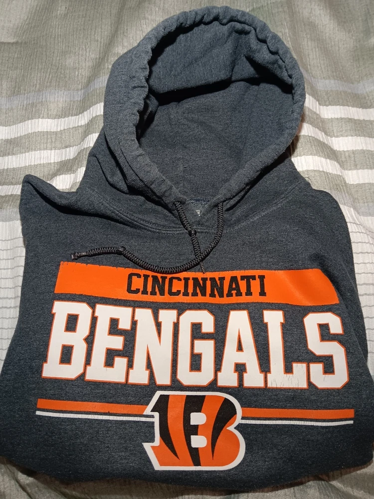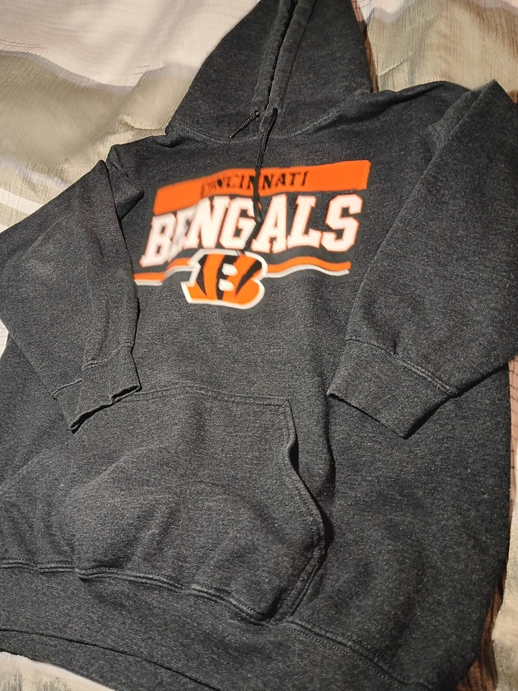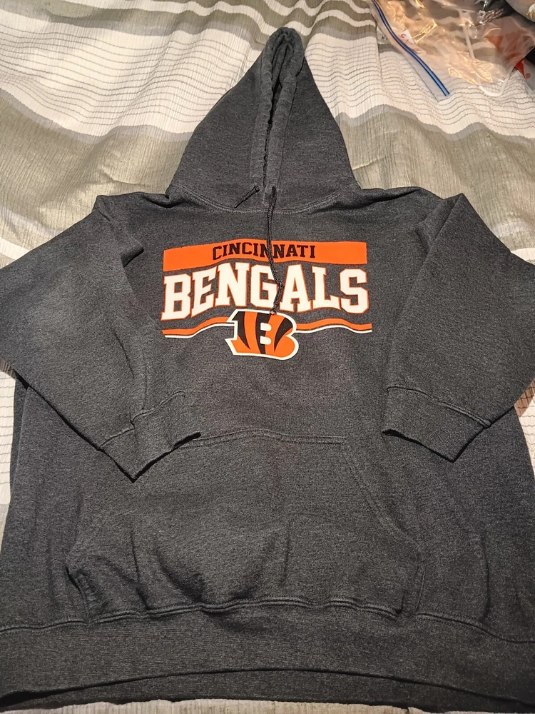 NFL Team Apparel Cincinnati Bangels Pullover Hoodie Sweater Gray Sz Lrg . Condition is Used. Shipped with USPS Ground Advantage.