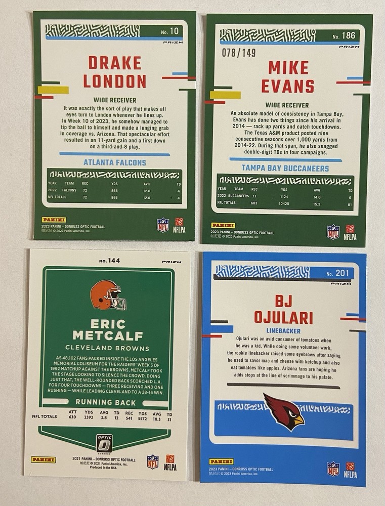 HomeNFL Donruss Optic SSP Football 4-Card Lot Featuring Rocket, Flex, and Teal Velocity Designs