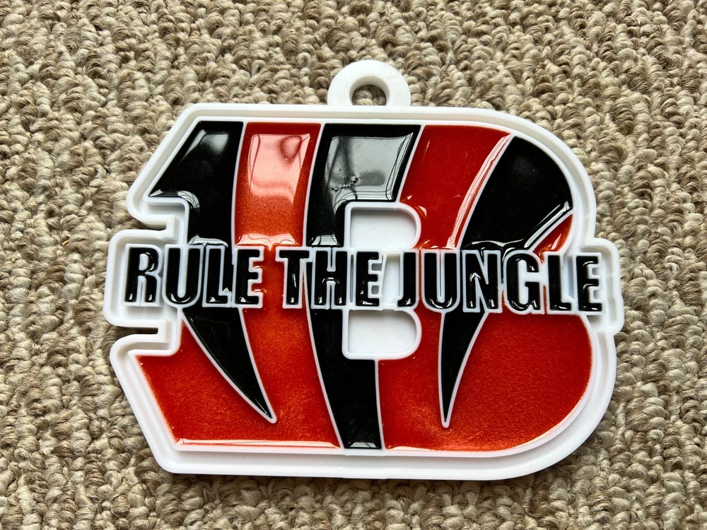 Tired of those cheap foam medallions always ripping and tearing? These solid 3D printed swag chains will last for seasons! Is your friend or family member a huge football Fan? Whether a birthday, Christmas or simply celebrating the start of the new season, our 3D printed Medallions make the perfect gift! These PLA and Epoxy logos can also serve as the perfect addition to any fan cave. Each medallion is approximately 6x6 inches and weighs less than 1lb. Each one is hand-made in the USA and 3D printed, sanded, coated, primed, and painted by hand. The final step is the epoxy pour which leaves a custom one-of-a-kind granite effect. Each medallion has a unique finish and look so final results in the granite effect will vary. Do you want a custom swag chain with your own logo and text? Message me for details. At Fins Place Art we only use Artresin Epoxy which has passed the strict California Prop 65 testing. However, we will still include the warning for shipments going to California.