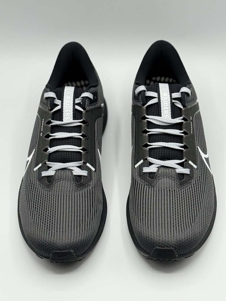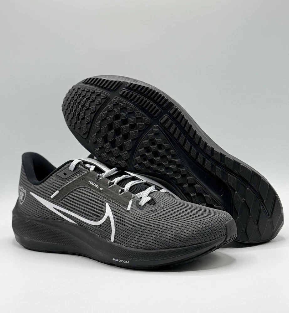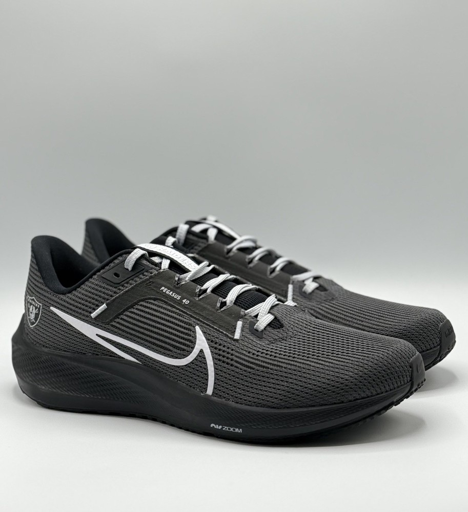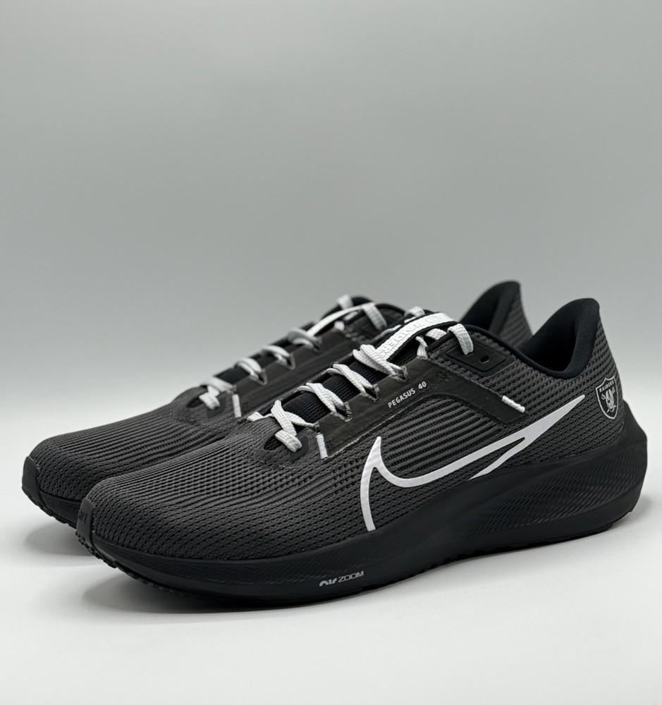 Men Size 12 DZ5953-001 The NFL x Nike Air Zoom Pegasus 40 Men's Size 12 Running Shoes in Las Vegas Raiders colors are designed for athletic activities such as running, gym training, and casual wear. These sneakers feature a lightweight and breathable mesh upper with a cushioned foam insole for comfort and performance. The rubber outsole provides traction and durability, making them suitable for various seasons and occasions. With a unique limited edition design and colorful theme, these sneakers are a stylish choice for sports enthusiasts and fans of the Las Vegas Raiders.