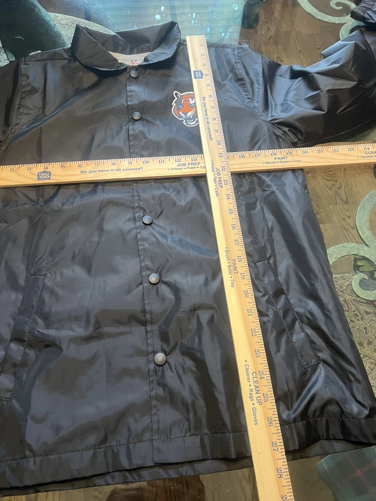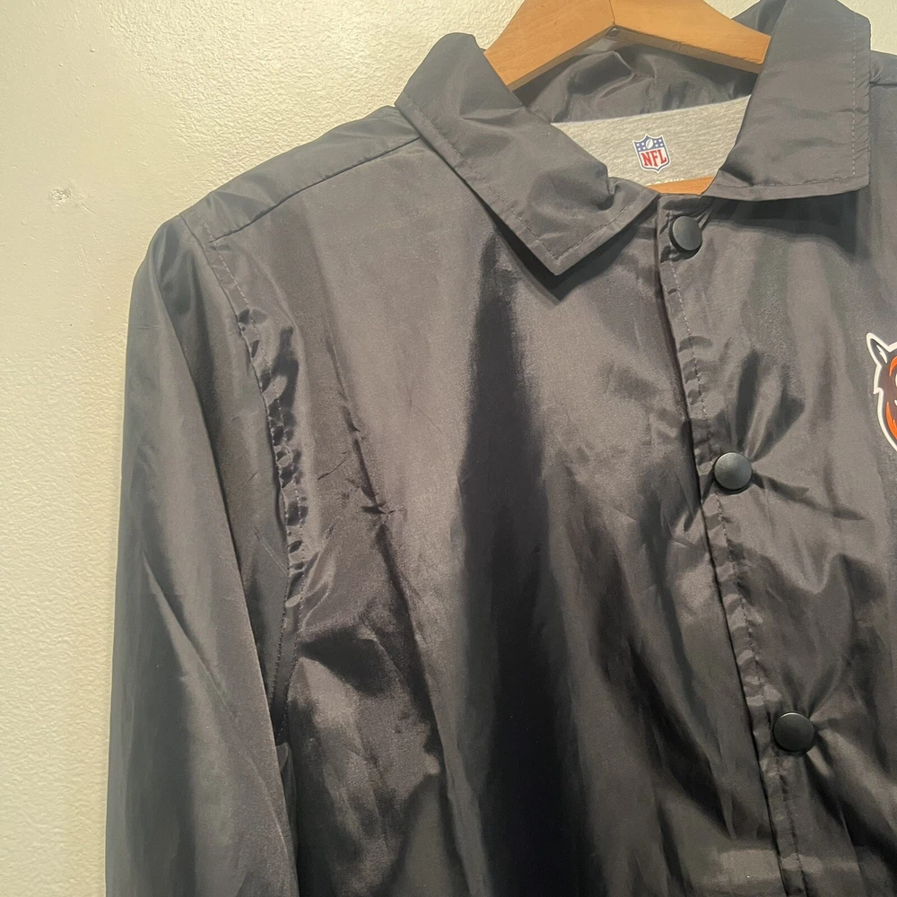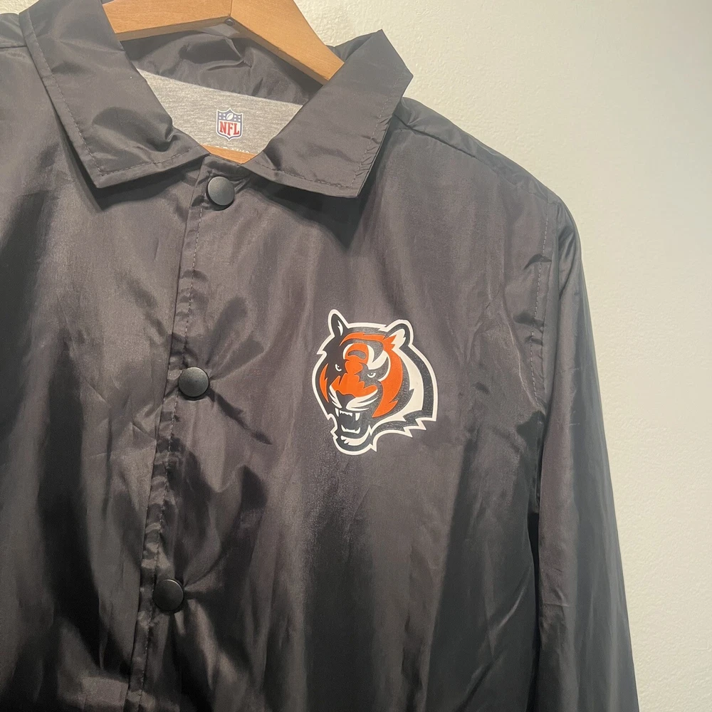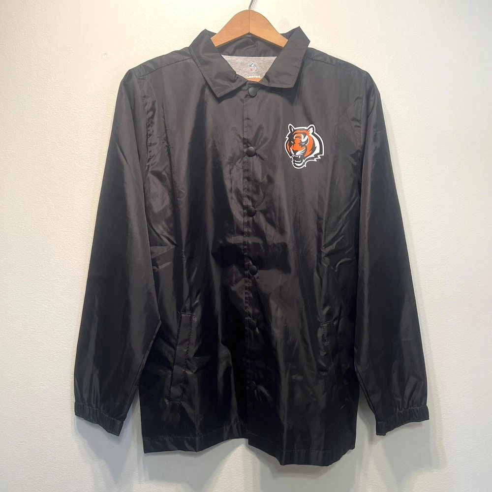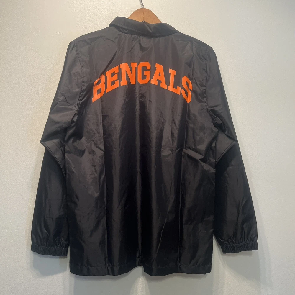 Show your support for the Cincinnati Bengals with this officially licensed NFL Youth Boys Large 14/16 windbreaker jacket. The black jacket features the team's logo and colors, making it perfect for football fans. It is made of high-quality materials to ensure durability and comfort, making it an ideal choice for regular season games. This jacket is designed for boys and is perfect for showing off your team spirit. It is a must-have for any young fan of the Cincinnati Bengals. Get your hands on this NFL Youth Boys Large 14/16 windbreaker jacket today and show your support for your favorite team!