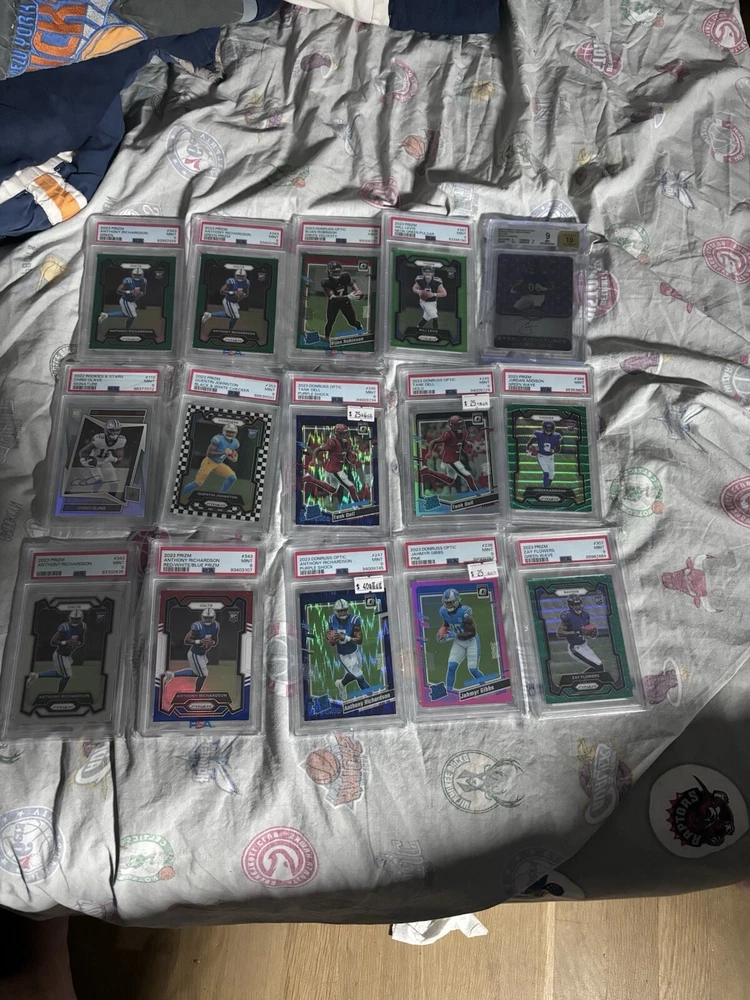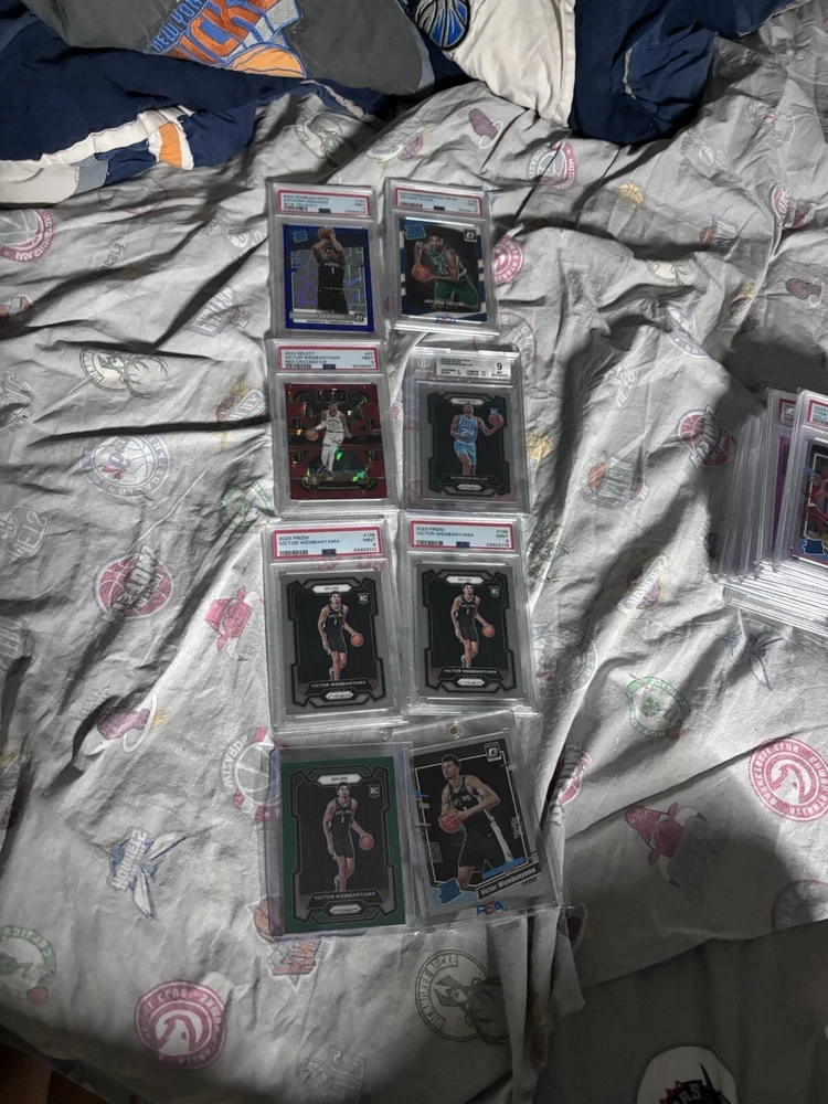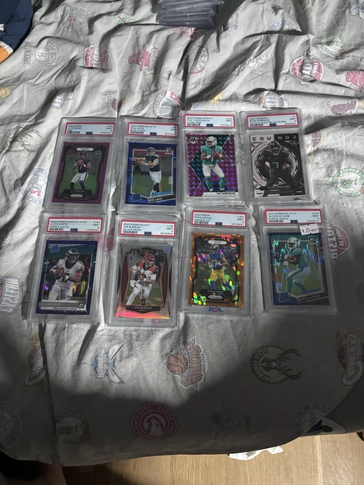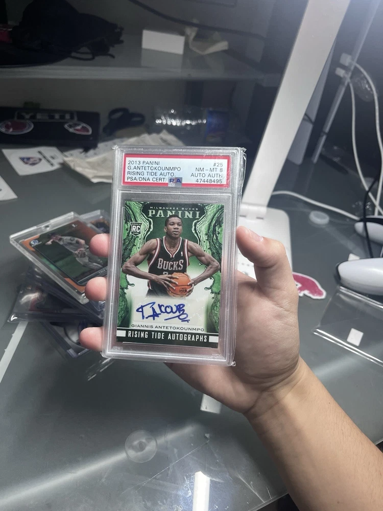 Thanks so much for stopping by In each pack you will receive 1 psa /bgs graded card ($15-$700) The lowest grade you can get is a psa/bgs 9 Odds 1:10=2 Cards in one pack (min value $40) 1:20(mini chaser) 1:50(medium chaser) 1:75=pack overload!!(5 packs in one order!) 1:100(mega chaser) The cards in the listing photos are some cards that can be in the packs and the Giannis auto ($700) being the mega chaser. There are also medium chasers($150-$300) and mini chasers ($75-$150) Ive done 2 mystery pack listings before and they have both gone super successful. I am hoping this goes the same way and good luck if you are buying! (First ever buyer gets a extra pack for free!!) Also, these are basketball and football packs, but if you just want one of the sports, just direct message me which sport and ill make it happen! Also if you have a specific player you like i can try to throw in a few free cards of them!! GOOD LUCK!!!