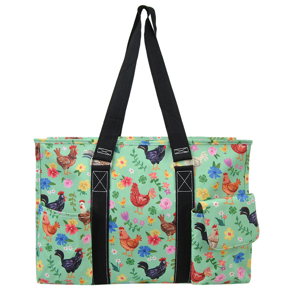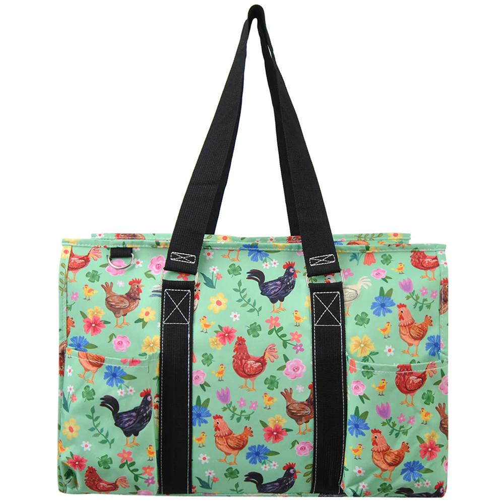 The NGIL LARGE TUTILITY Tote is a versatile utility tote perfect for carrying all your essentials. With a large size and durable canvas material, this tote is ideal for traveling or everyday use. The black color and unique crossed style design make it a stylish choice for any occasion. The N'GIL brand ensures quality and reliability in this practical and fashionable tote. Perfect large carry all tote bag for any occasion. The bag measures approx.: 18.5"(L) X 7.5"(W) X 13"(H). Has plenty of room to be used as a diaper bag, grocery bag, overnight bag, weekender bag, beach day bag, school bag and much more! Material : Canvas This all-purpose utility tote bag is super lightweight and Collapsible making it easy to put away and is constructed with water resistant material for easy cleaning. Great bag to carry everything you need: 2 front open pockets, 2 rear pockets with one Velcro flap closure. Includes, a side mesh pockets on both sides to carry bottles, and a mini side pocket for small important items. Zip top closure to keep all items safe and in place and as well comes with a key ring in front to keep keys safe. Double carrying handles drops approximately 14" making it comfortable to use for any errand. Great gift idea for friends, family, teachers, nurses, birthdays, and many more occasions.