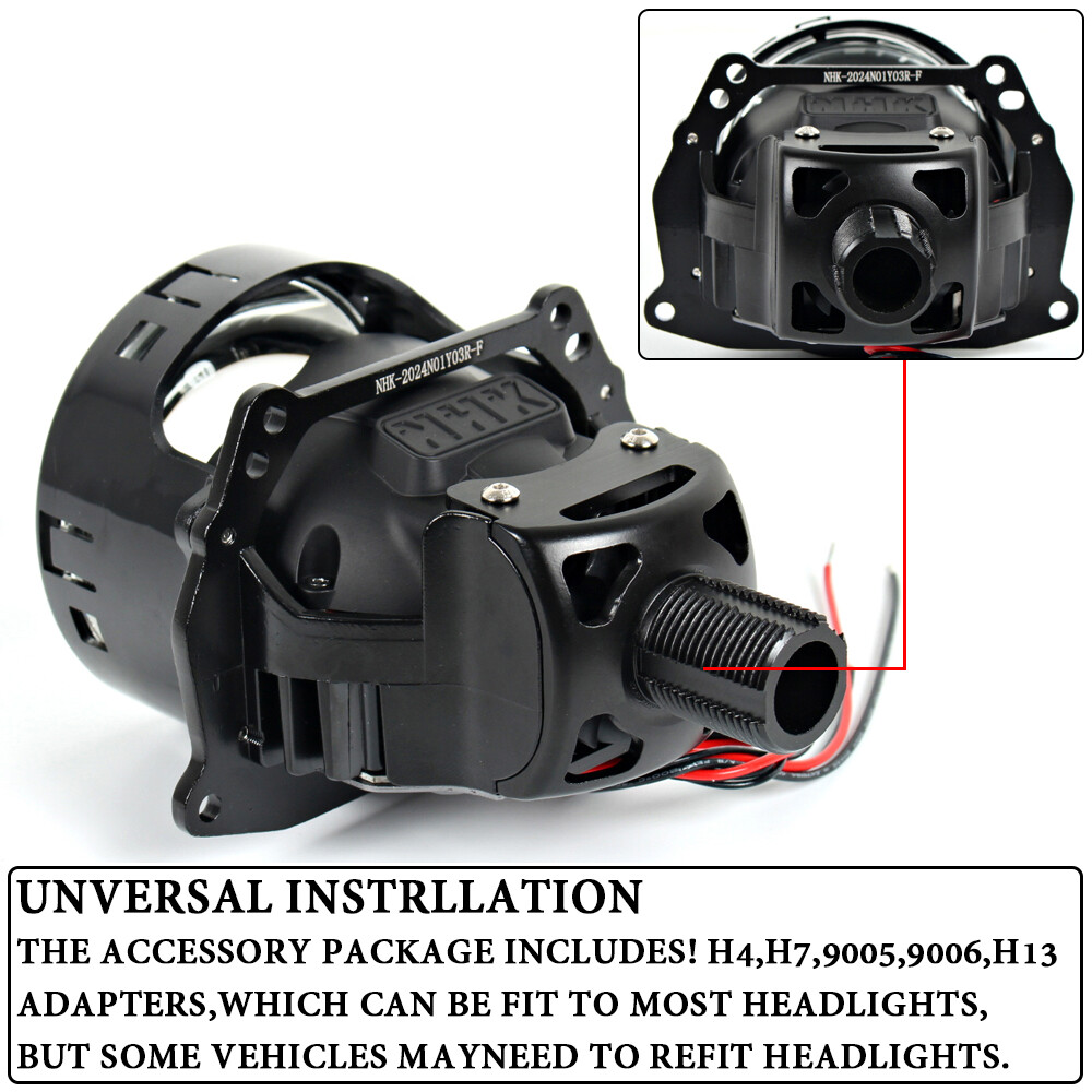 NHK 3.0'' Bi LED Projector Lens 6000K Mini Headlight H1 H4 H7 9005 Retrofit Specification: Size:3.0 Inch Voltage:9V-16V Color Temperature:6000K Wattage:90W/Pair (Low beam). 130W/Pair (High beam) Driver:Dual reflector, built-in LED driver, suitable for headlight follow-up Light Beam:LHD LHD, Left-hand-drive, steering wheel on the left, the car in US/CA/IT/HU/DE/RU...etc. RHD, Right-hand-drive, steering wheel on the right, the car in UK/AU...etc. Product Description: Solenoid: Strong and powerful magnetic solenoid to allow more light through the lens, improves the lens performance and illuminate further down the road. Reflector: Dual reflector and anti high temperature provides the bi-led lens with longer lifespan. Cooling Style: Built-in heat-sink fan, cooler 30% than others. Fan: High speed silent turbo fan, 12000rpm. Cooling System: With high quality cooling fan and aluminum heat dissipation module, high efficiency heat dissipation. Fast speed ball bearing fan but with much more silent sounds and reliable quality. Cutoff Line: The lens cutoff line is nice and sharp, perfect beam pattern without blind zone and dark spots.Cutoff Line: The lens cutoff line is nice and sharp, perfect beam pattern without blind zone and dark spots. Low Beam: With obviously tangent, wide angle design, accurate focus point. Nice and sharp cut-off line, perfect beam pattern without blind zone and dark spots. High Beam: Accurate focus length, long spotlight, no astigmatism. A properly distributed and wide beam pattern. Package includes: A pair of NHK 3.0 inch Bi-LED Projector Lens Installation Adapters Payment Delivery details Returns About us Contact us Payment We Accept PayPal and Credit Card Non-pay bidder will get an unpaid alert from eBay Delivery details All orders will be shipped out within 1-3 business day after payment has been received We guarantee all our products are 100% brand new We highly recommend professional installation for all products. Installation instructions are not included for some products Returns If product is defective upon arrival, please email us immediately with a digital photo of the product, we will assist you with the returning procedure and we will be cover all shipping charges If product is damaged upon arrival, please e-mail a digital photo of the problem. We will file a damage claim to the shipping company. After claim has been approved, we will re-ship the item at shipping company's cost If the package is lost in transit, replacement or refund will only be issued after a lost claim has been approved by shipping company If buyer received incorrect item, please e-mail us with a digital photo of the item. We will issue a prepaid return shipping label and charge for re-shipping charge. (For domestic shipment only) If buyer purchased the wrong item by error and wants an exchange, buyer have to pay for all shipping charges About us * Welcome to our store! * We are professional suppliers of motor parts and Car accessories. 1. Our all products have 30 days of after-sale protection and 2 years services. 2. Please feel free to contact us if you have any question about the items, we will do our best to serve you. 3. Because of the different time zone, please give us some time, all emails will be replied to you within the first time. Contact us About us Payment Returns Feedback Contact us 1. If you are not satisfied with our products or services, please contact us before leaving negative feedback. Good communication helps buyers and sellers to solve any problems. 2. We are promising to try our best to provide the best service and 100% satisfaction for valuable buyer like you.