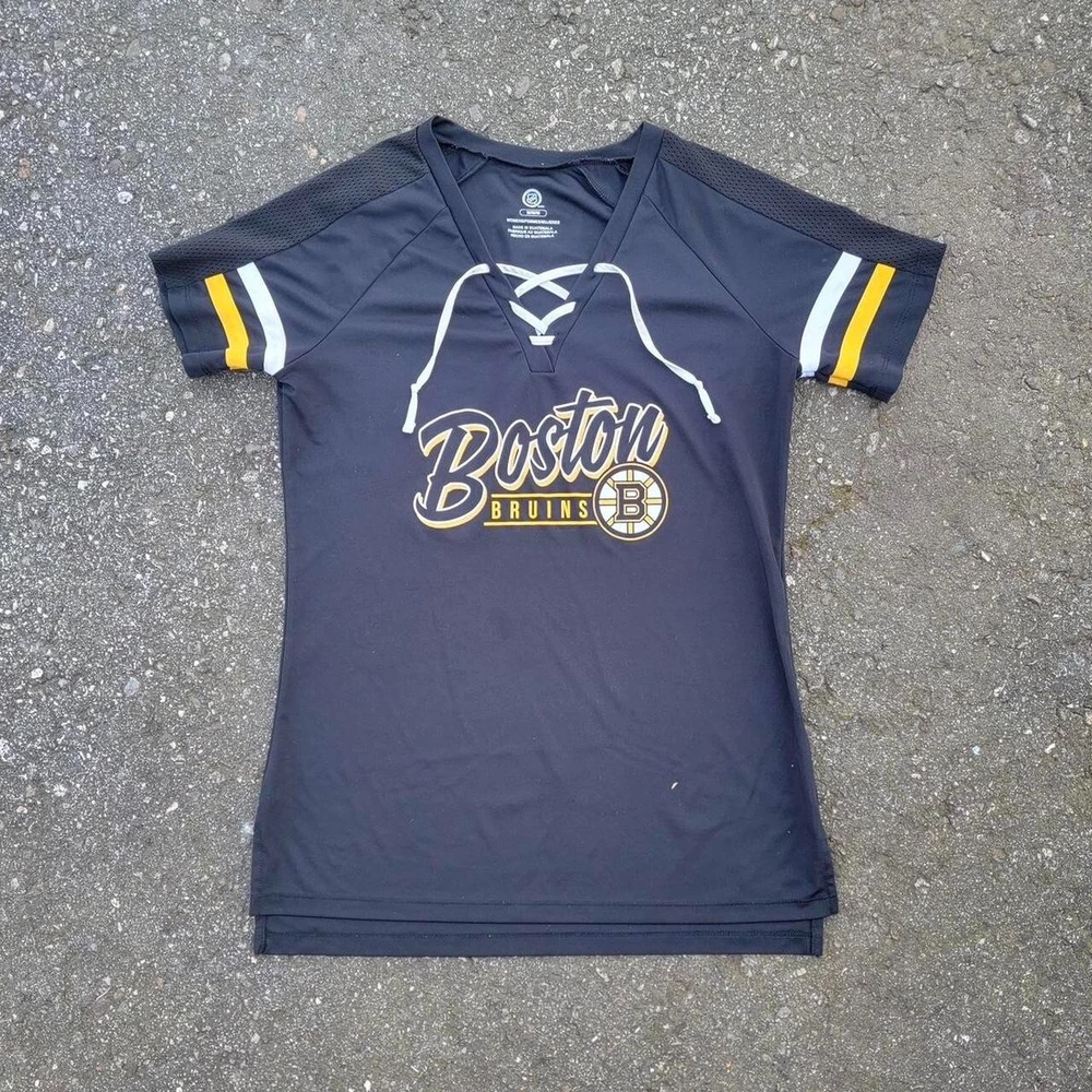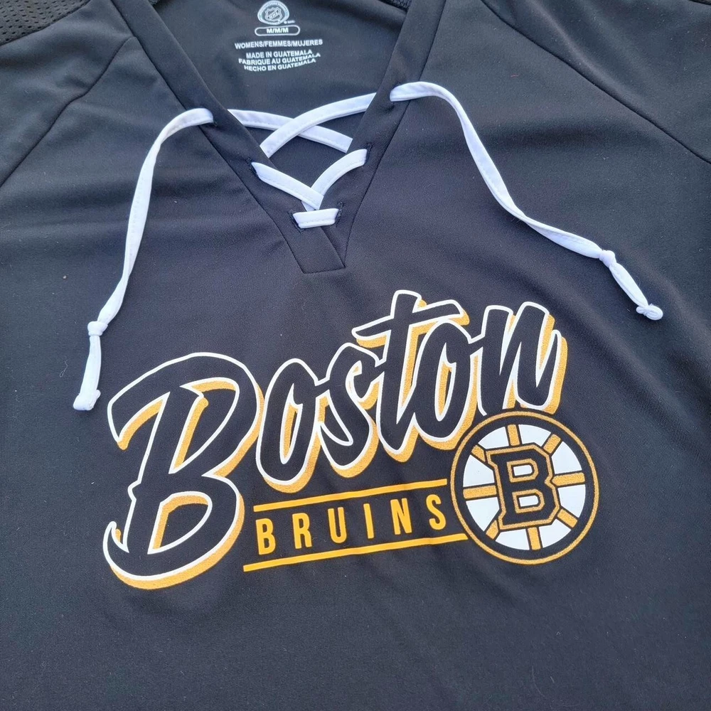 NHL Boston Bruins Women’s Black Lace Up Short Sleeve Jersey T Shirt