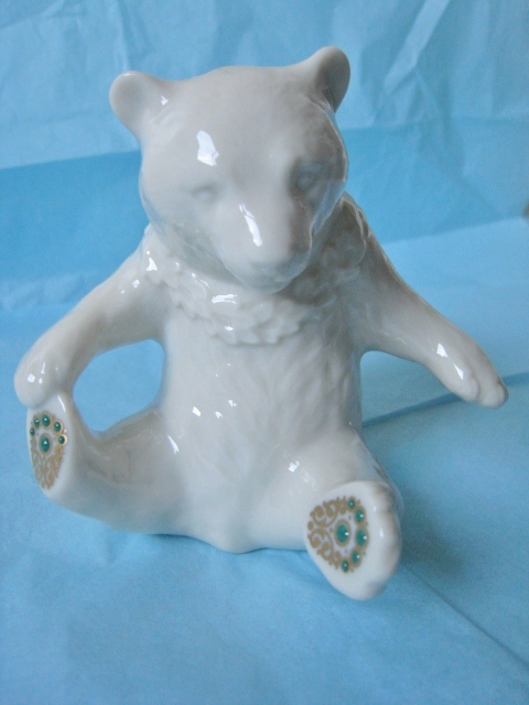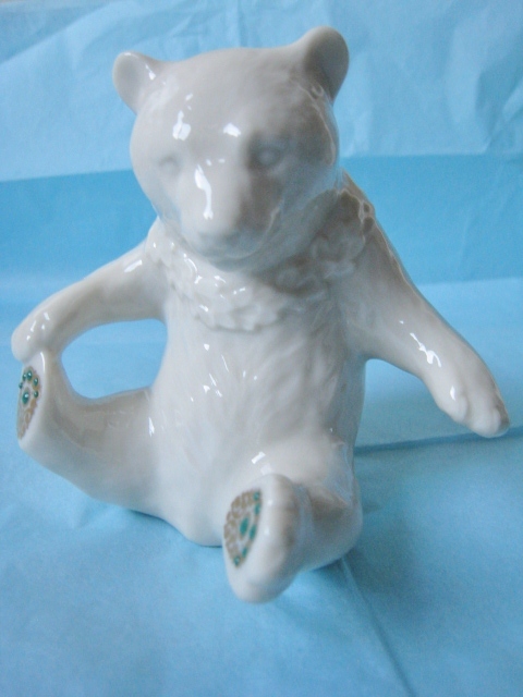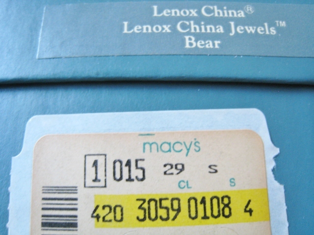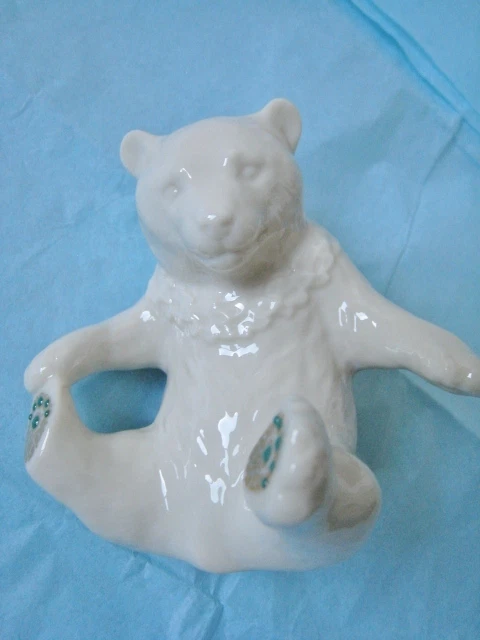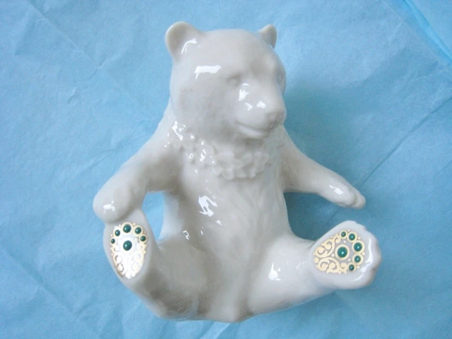 NEW LENOX CHINA JEWELS COLLECTION BEAR FIGURINE PERFECT WITH ORIGINAL BOX AND TISSUE BEAUTIFUL PAWS WITH GOLD AND JADE JEWELS WONDERFUL DETAIL ON 4" WHIMISICAL BEAR STORED IN BOX SINCE PURCHASE SMOKE FREE HOME SELLER IS ORIGINAL OWNER