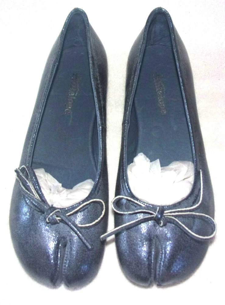 NIB ANTELOPE BLUE METALLIC SLIT BALLET DISTRESSED LEATHER BOW FLAT EU 39, 8 M This distressed leather flat marries a classic Japanese tabi design with a convenient silhouette for stylish steps. Slip-on Leather upper Leather lining Man-made sole