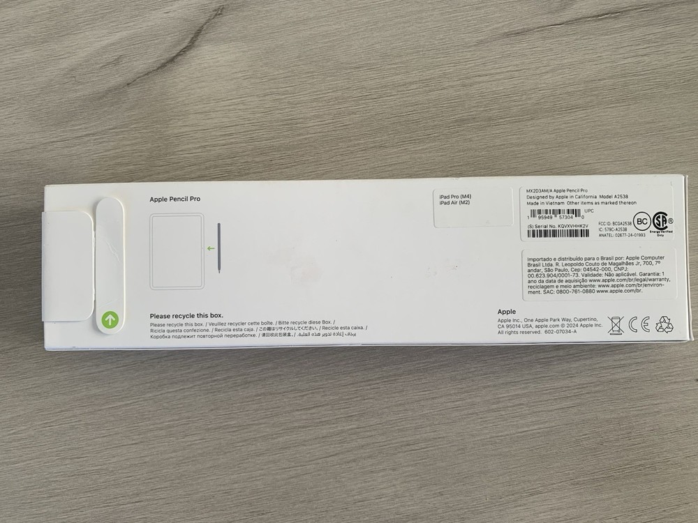 Compatible Model: Apple iPad Air (M2) 11" 2024, Apple iPad Air (M2) 13" 2024, Apple iPad Pro (M4) 11" 2024, Apple iPad Pro (M4) 13" 2024 Country of Origin: China Item Height: 1:4 Brand: Apple Type: Stylus MPN: MX2D3AM/A Material: Rigid Plastic Model: Apple Pencil Pro Compatible Brand: For Apple Compatible Screen Size: 12.9 in, 10.2 in, 10.1 in, 7.9 in, 11 in, 10.9 in, 10.5 in Color: White Manufacturer Warranty: 1 Year