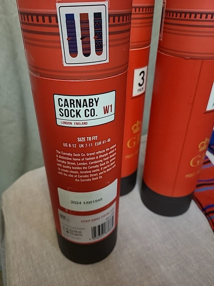 Sock Length: Crew Size Type: Large Foot 8-12 USA Model: W1 Theme: London, England Pattern: Polka Dot Handmade: No Size: L US Size 8-12 Color: Multicolor As Seen In Photos Garment Care: Machine Washable Product Line: Carnaby Brand: Carnaby Sock Co. Season: Fall, Spring, Summer, Winter Features: All Seasons, Lightweight Country/Region of Manufacture: United Kingdom Performance/Activity: Walking Type: Socks Number in Pack: 3 Pairs Material: Polyester Blend Occasion: Casual Style: Crew Socks Department: Men