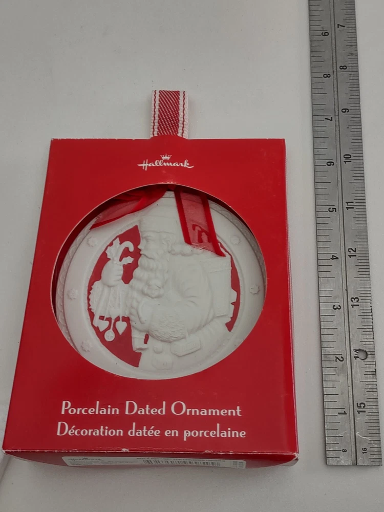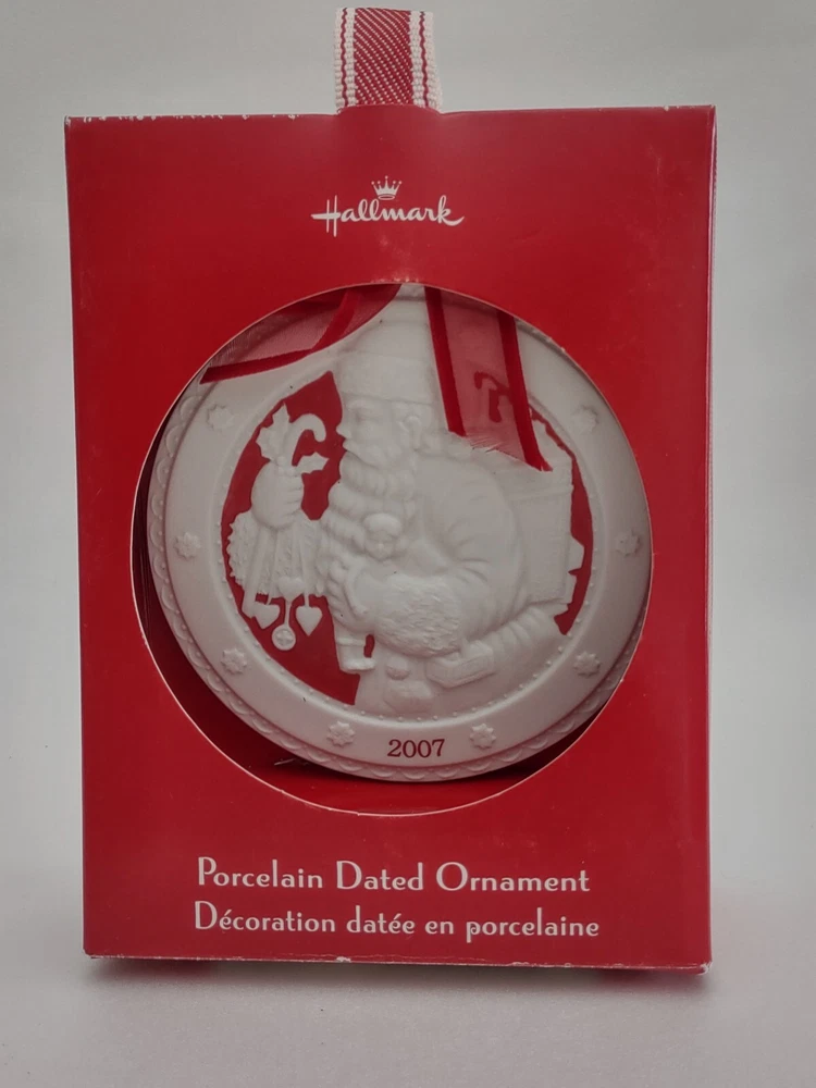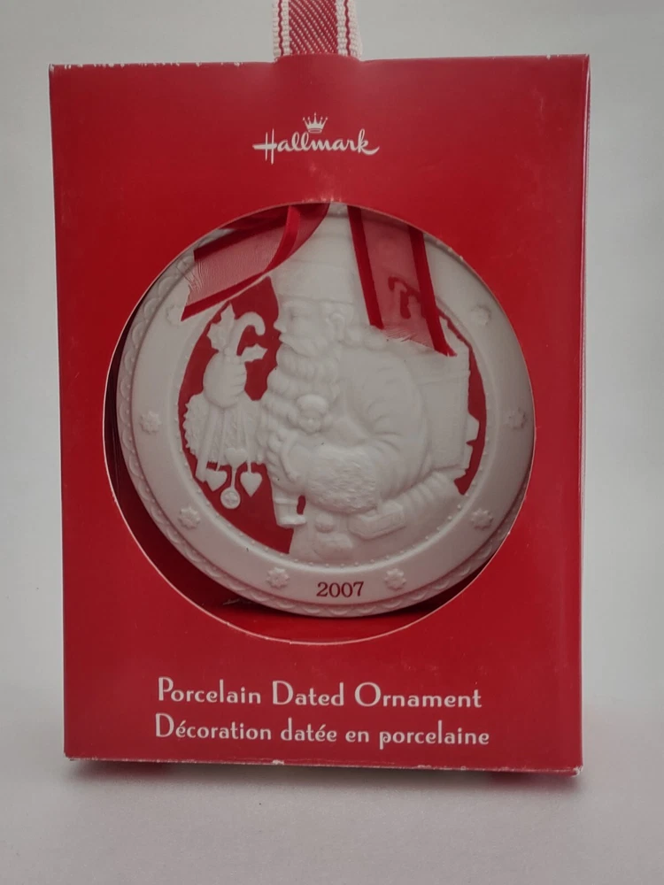 Material:PorcelainPersonalize:NoType:OrnamentOccasion:ChristmasTheme:ChristmasBrand:HallmarkTime Period Manufactured:2007Franchise:HallmarkShape:RoundOriginal/Licensed Reproduction:OriginalCountry/Region of Manufacture:ChinaAge Level:Over 18 Yearsgtin13:795902999599Custom Bundle:NoUPC:795902999599Number of Items:1Color:WhiteYear Manufactured:2007Collection:OrnamentsSet Includes:OrnamentHandmade:NoAntique:NoSubject:SantaVintage:Yes