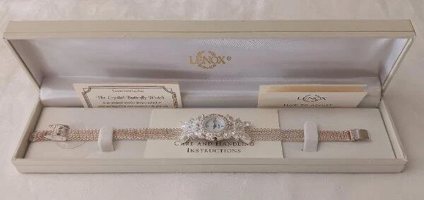 NIB Lenox Sterling Silver Crystal Butterfly Watch Bracelet New Needs Battery From a Florida estate, this is a gorgeous watch bracelet made with a sterling silver band with crystal setting by Lenox. It's not been used and comes in the original box with paperwork. It will need a new battery. . The green reflections in the second to last photo are from my camera case. Measurement is approximately 8 & 3/4 inches long, (wearable length will be shorter). It's in excellent, unused condition. There is no damage to mention. The clasp works fine. Again, this will need a new battery. I do have other vintage linens, lace, fabric and jewelry on auction and am happy to combine shipping. See my other listings for more great items! Payment is expected within 7 days unless other arrangements have been made. All domestic orders will be shipped next day, Monday through Friday. International orders are shipped Monday, Wednesday and Friday. All international orders over $100.00 will be sent via Registered Mail for an additional charge of $13.00. Other Items txzj pxzj28721 txzj-11 txzj85 txzj115