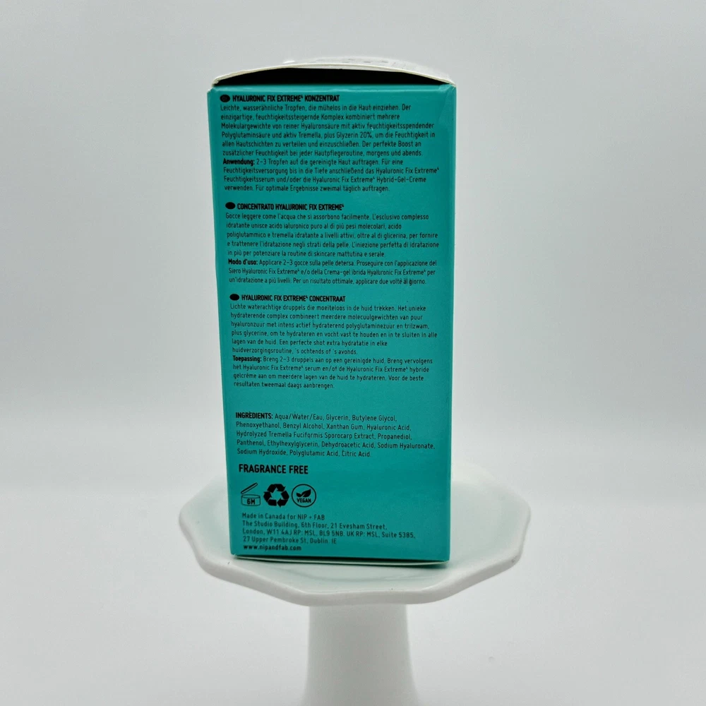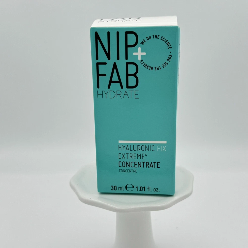 NIB Nip + Fab Hydrate Hyaluronic Fix Extreme Concentrate 1.01 oz Full Size. New in Box NIB HYALURONIC FIX EXTREME' CONCENTRATE Lightweight water-like drops that absorb effortlessly into the skin. The unique moisture-boosting complex combines multiple molecular weights of pure hyaluronic acid with active levels of hydration hero polyglutamic acid and tremella, plus glycerin to deliver, retain and lock in moisture throughout the skin. The perfect shot af extra hydration in any skincare routine, morning or night. * high and low molecular weight hyaluronic acid for multi-depth hydration + polyglutamic acid, which holds up ta 4x more moisture than hyaluronic acid and locks it in + tremella, a naturally derived form of hyaluronic acid that works to deliver moisture to the skin * glycerin helps to form a protective barrier to reduce water lass and soften skin Instructions: Apply 2-3 drops onto cleansed skin Follow with the Hyaluronic Fix Extreme* Serum and/or Hyaluronic Fix Extreme* Hybrid Gel Cream for multi-layer hydration. For best results, apply twice daily. ---------------- Smoke-free home. Items stored in cool, dry space. Shipping We will ship your item within two business days of purchase. Combined Shipping is available and partial shipping amounts paid will be refunded when ordering more than one item within the same hour. Photos Please see photos for best description of the item’s condition. All photos are of the actual item listed for sale, unless otherwise noted. We do our best to provide proper photos and descriptions of the items to insure there are no surprises once received. Clothing and Fabric Items All clothing and fabric items have been steam cleaned and/or washed per eBay standards. Thank you for shopping Declutteringo!