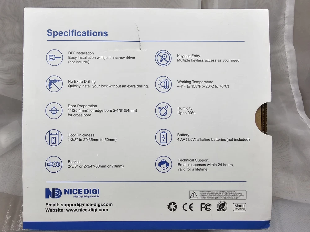 See attached pictures for size specifications! Shipping is free for states in the continuous United States. All others, please contact me for more accurate shipping prices. Thank you for browsing! Secure your home with the NICE DIGI Smart Keypad Door Lock with Handle. This keyless entry door lock is perfect for your front entrance, patio door, room pass, and interior room doors. Made of durable aluminum material, this lock comes in sleek black color and is suitable for all your security needs. This door lock is a great investment for your home. The NICE DIGI Smart Keypad Door Lock with Handle features a digital keypad that allows for easy access without the need for keys. This lock is made in China and is designed to provide you with peace of mind and security.