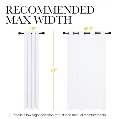 Return Policy Fast Delivery Trusted seller NICETOWN 100% Blackout Window Curtain Panels, Cold and Full Light Blocking Drapes with Black Liner for Nursery, 84 inches Drop Thermal Insulated Draperies (White, 2 Pieces, 52 Wide Each Panel) Product Description Polyester Ready Made: 2 panels per package. Each Classic Lined Curtain measures 52" wide x 84" long (Total width is 104") when fully spread. Due to handmade craftsmanship, size may vary by 1". The unique design of the silver grommet (1.6 inch inner diameter) creates casual elegance for your house, which makes the curtains easy to install and slide. For best fit, please measure your window before ordering. Blackout Effect: Sew in black liner backing makes the drapes thick enough to completely keep out 100% sunlight and uv ray. Offers you a truly dark environment for restful sleep day or night. Note: Some natural light may show around edges depending on window installation. Noise Reducing: Heavyweight blackout lined curtain panels help reduce ambient noise (approximately 30% noise reduction). While not completely soundproof, they provide significantly better sound absorption than single-layer curtains for a more peaceful environment. Unique Design: Made of pure white triple-layer blackout fabric (natural color variations may occur). Features durable double-layer construction with reinforced stitching - each 3.5 lb panel requires sturdy rods (10+ lb capacity recommended). Easy Care: Quality finishing will withstand years of use. Do not wash the blackout curtains in water, just dry cleaning. Low temperature ironing. Don't use sharp things scratching curtains. Shipping Returns Payment Shipping Shipping is FREE to all addresses other than APO/PO boxes in the lower 48 states. All our stock ships from US-based warehouses. Shipped via USPS or UPS (depending on location and package weight) Unless stated otherwise, all orders will ship within 24-72 hours of your payment being processed. Check our feedback to see the great reviews of FAST shipping we offer. Returns Seller does not accept returns Payment We currently accept payment via eBay managed payments only. Once payment is cleared, we will dispatch your shipment within 1-3 business days. Please refer to the "Shipping" tab for more information regarding shipping speed to your destination.