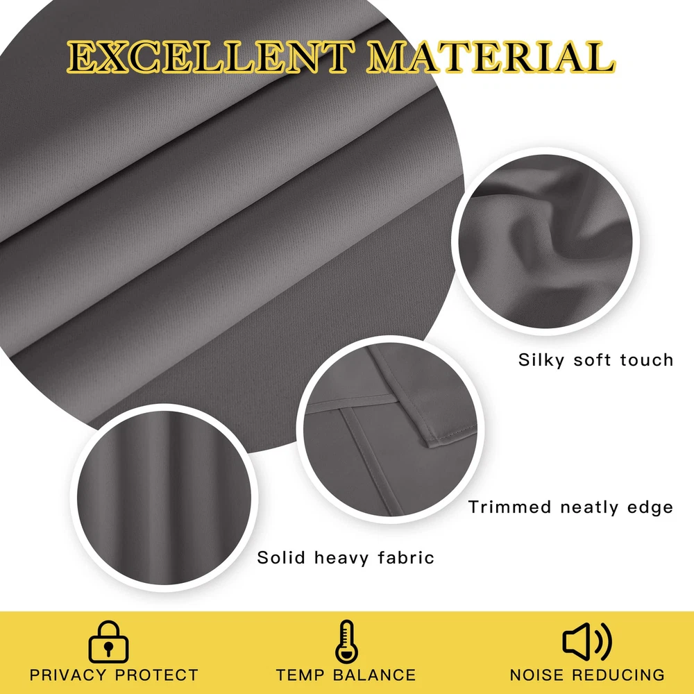 AMAZING FABRIC: The blackout curtain's fabric is super soft and heavy innovative triple-weave polyester fabric. Same material back as of front makes it appear more elegant. The 14 sliver grommets top (inner diameter is 1.6-inch) adds a modern touch and easy hanging. MULTIPLE FUNCTIONAL: These extra wide curtains are wide enough to covering sliding door perfectly. Besides, the curtain panel helps your patio door to block out most of light and UV ray, high performance on thermal insulated, noise reducing and privacy protecting. ENERGY SMART: Triple weave blackout fabric balances room temperature by insulating against summer heat and winter chill, reducing air conditioning costs. Protect your furniture, floors and artwork from the ravages of the sun, the Patio Door Drapes will pay for themselves off over time. WISE COMPATIBLE: Thread trimmed and wrinkle free, all sets for you to put them up right away. Suitable perfectly for: sliding door, patio door and any large window. These wide curtains can be hung separately, or combine with NICETOWN sheer curtains. EASY CARE: Good quality finishing will withstand years of use. Machine washable and Wash the water temperature below 86F. Mild detergent no bleaching. Low temperature ironing. Don’t use sharp things scratching curtains.